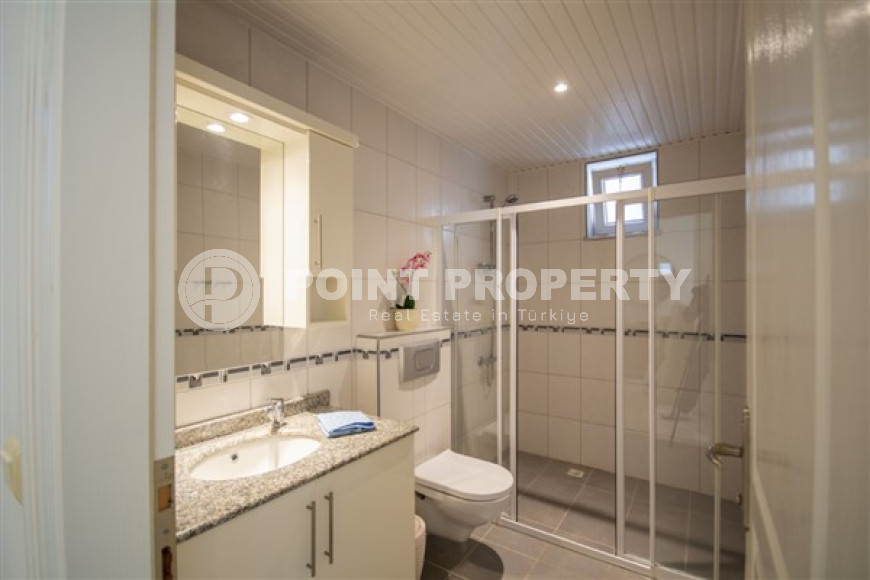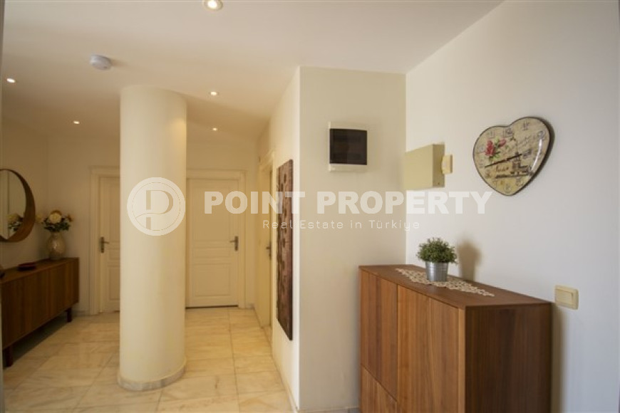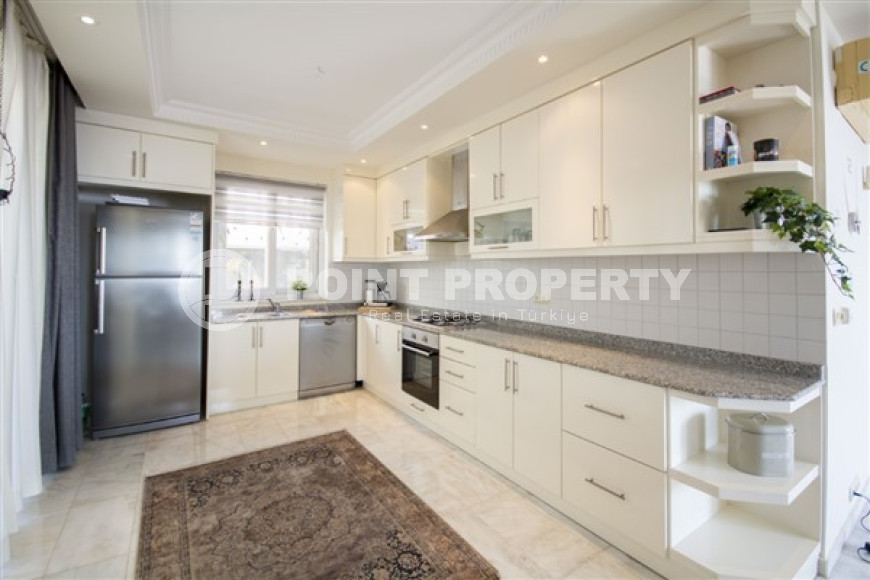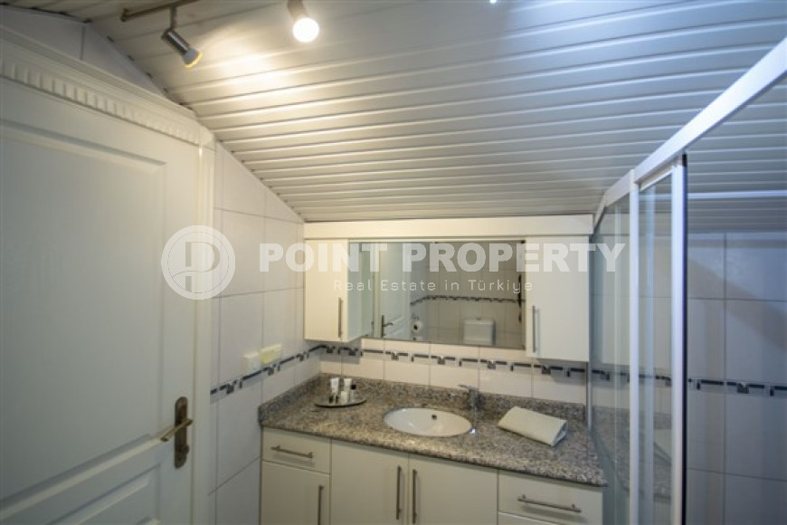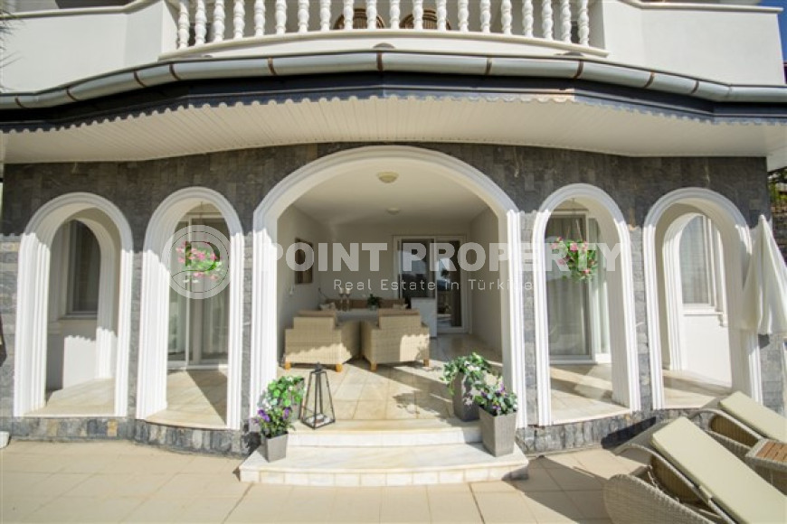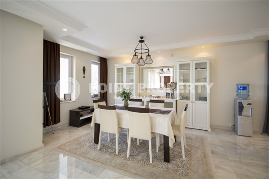 Do you want to enjoy amazing views of the sea and Alanya fortress from your own home? Do you prefer the privacy of a villa to the crowdedness of an apartment building? In this case, a luxurious 4+1 villa, with an area of 350 m², in the Alanya Tepe area should interest you. Tepe – This is an area that is located in the hills at the foot of the Taurus Mountains in the northern side of Alanya. A quiet, picturesque and environmentally friendly place, just 3 km from the city center and 3.5 km from the beaches, which takes a few minutes drive. Nearby you will find the necessary shops, restaurants, authentic cafes with gorgeous views, a bus stop, etc.