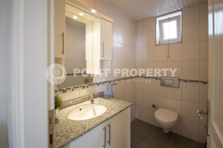 The windows of the house face three cardinal directions – east, south and west. The entrance to the building is on the second floor, because it corresponds to the level of the access road. First we find ourselves in the hallway. Further, on the second floor there is an impressively spacious living room, combined with a dining area and a kitchen, which is perfectly hidden in a niche around the corner and is not visible at first glance. From this room we can access a very cozy terrace with excellent views of the city panorama and the sea. On the same floor there are three bedrooms. The main bedroom, with a separate bathroom, occupied the top floor. All rooms are fully furnished and ready to move in. However, air conditioners are already somewhat outdated. If you decide to replace them with new ones – Our after-sales service staff will help you choose the ideal model.