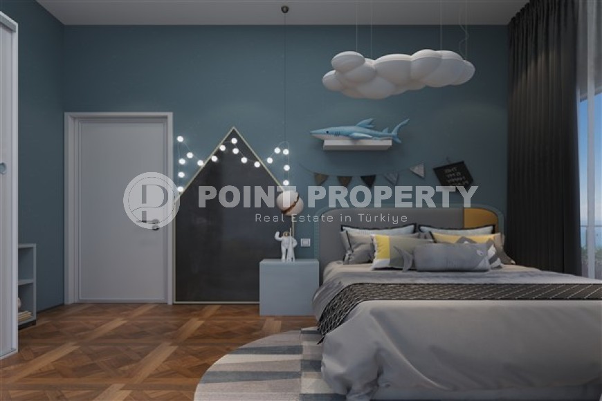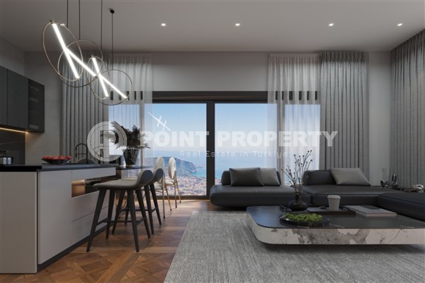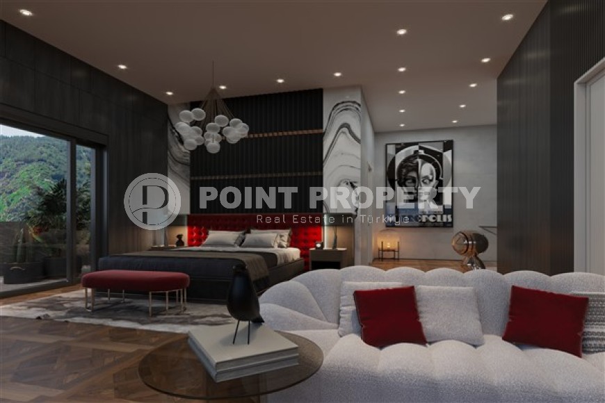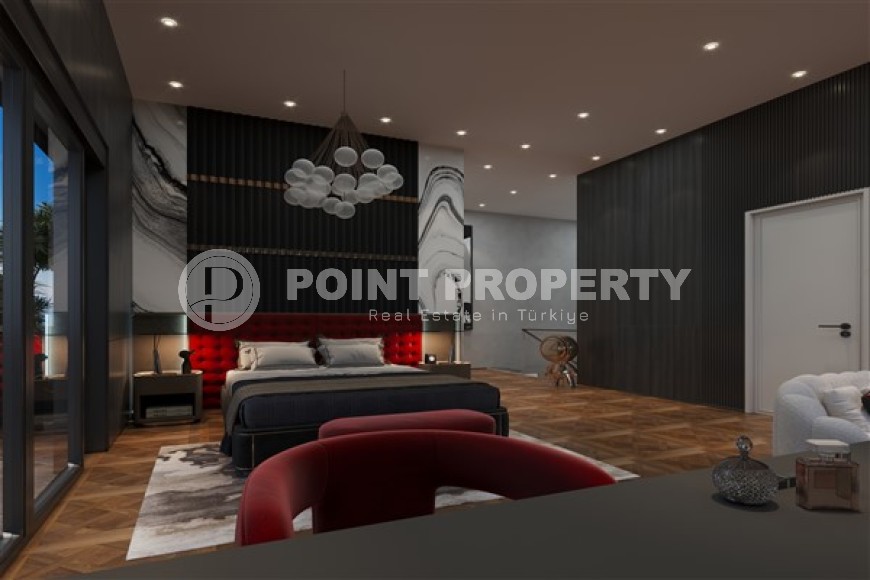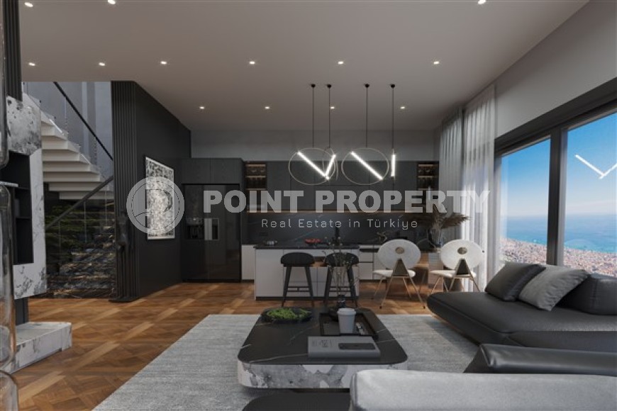Duplex apartment with two bedrooms, with an elegant interior, in a modern premium complex in the center of Alanya, just 350 meters from Cleopatra Beach