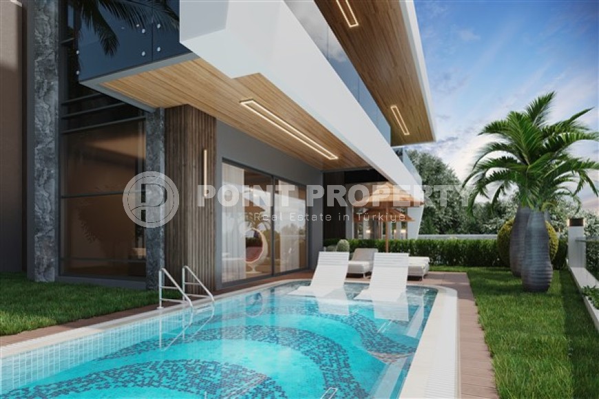 Each villa has its own garden with a landscaped seating area, a swimming pool and parking. The distance from the complex to the center of Alanya is only two kilometers, and to the beach and the picturesque promenade - 2200 meters.