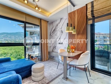 We offer a bright 1+1 apartment of 45 m² on the second floor of a new residential complex built in 2025. The layout includes a living room combined with an open-plan kitchen, where a stylish set is installed on the entire wall. Panoramic windows fill the space with natural light, and the floor is laid with durable porcelain stoneware. The apartment has one bedroom, an equipped bathroom and a cozy balcony overlooking the surroundings and the territory of the complex.