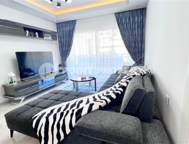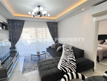 A furnished 1+1 apartment is offered in a modern complex in Mahmutlar near the new Yekta Mall. The area is 50 m2, located on the 4th floor of a building built in 2021. The sea is 550 meters away, the center of the area is 200 meters away.