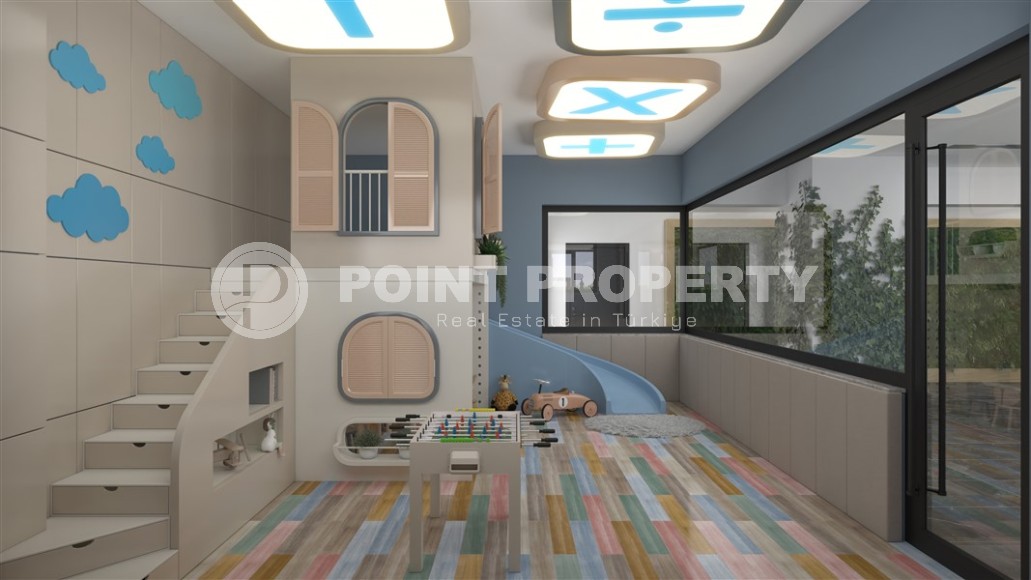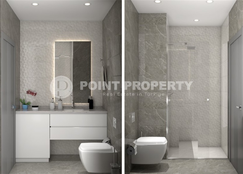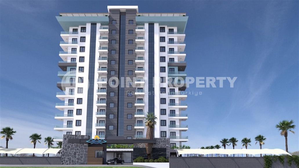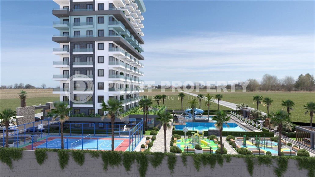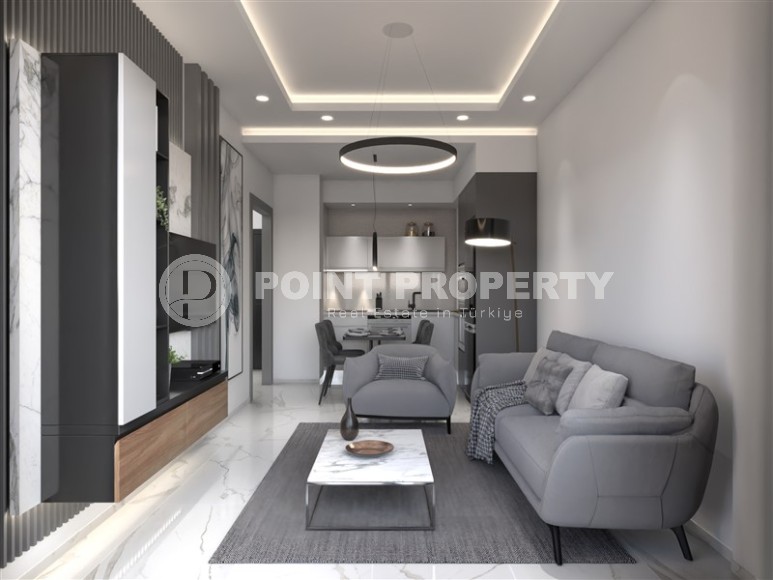 If you are still looking for the apartment of your dreams, are modern and lead an active lifestyle, we are pleased to announce that in the popular area of Alanya - Mahmutlar, the construction of a comfortable residential complex will be completed in April 2024, with a spacious territory and rich internal infrastructure. On the 1st floor there is a small apartment for sale, which can become your summer residence or an apartment for permanent residence. Its total area is 55 m2, the 1+1 planning solution consists of a living room, a bedroom, a bathroom and a balcony combined with a kitchen. The apartment will be handed over to the owners with high-quality finishing - suspended ceilings with spot lighting, flooring, kitchen units and high-quality plumbing.