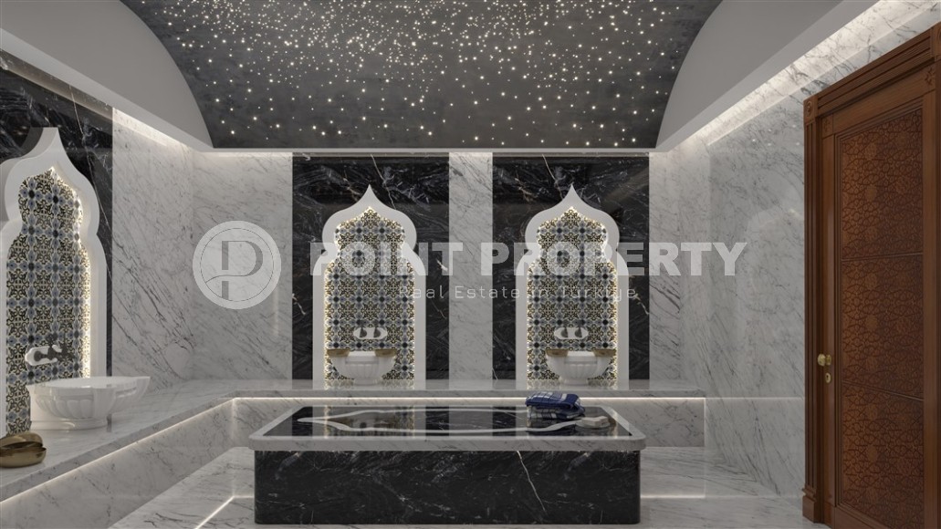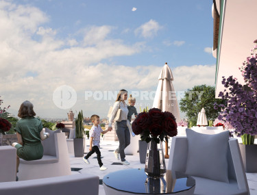 The center of the Mahmutlar district, where supermarkets, pharmacies, shopping and entertainment complexes, cafes, restaurants, beauty salons, bank branches, public transport stops are concentrated, is located a ten-minute walk from the residence. And the distance from the apartment to the beach, landscaped for a comfortable stay, and the picturesque promenade is one kilometer.