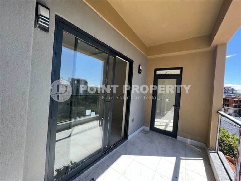 The advantages of the quiet area of Alanya - Tosmur include: a mild, cooler microclimate, good ecology, picturesque nature, a cozy promenade near the Dim Chay mountain river, and a light, cozy atmosphere. Currently, this part of the city is actively developing and being built up, modern residential complexes are appearing, with an infrastructure that is not inferior to luxury hotels. In one of them, put into operation in December 2023, a small 1+1 apartment with a total area of 65 m2 is for sale. It is located on the 1st floor and has a layout combined with a kitchen, a living room, one bedroom, a bathroom and an open balcony overlooking the green garden. All finishing works have already been completed in the apartment - suspended ceilings with spot lighting, ceramic flooring, practical kitchen units and high-quality plumbing have been installed, so the new owners can only bring their design ideas to life, and our professional after-sales service department staff will help you do this. Experienced company employees will take care of everyday issues such as ordering furniture and equipment, connecting communications and insuring the property, giving you the opportunity to control the process and prepare for the move.