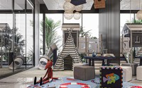 A large area of the site is allocated for internal infrastructure - a landscaped garden with floor chess, a children's park, a picnic area with a gazebo, a mini-golf course, swimming pools for adults and children. Inside the building there will be a recreational area with a fitness club, sauna, jacuzzi, relaxation room; as well as a mini club, billiards, and a lobby. Separate parking is provided for car owners in the residence.
