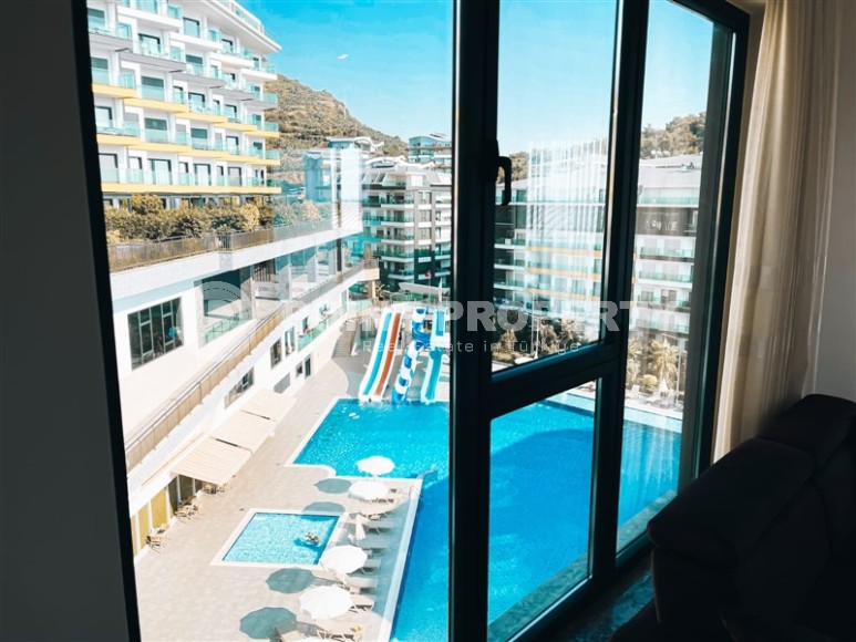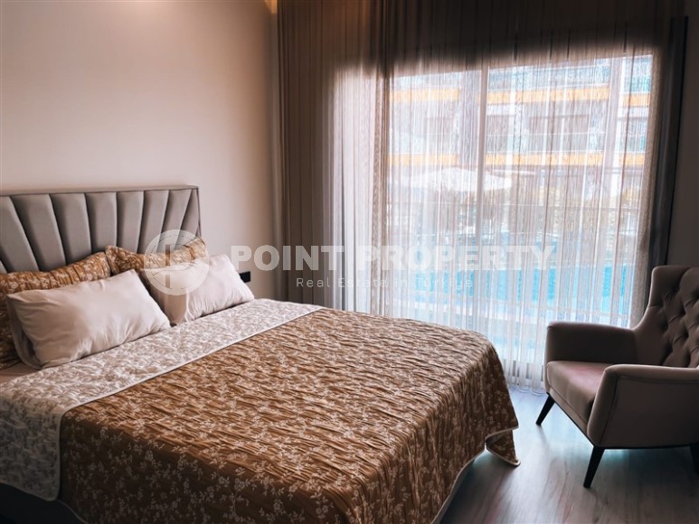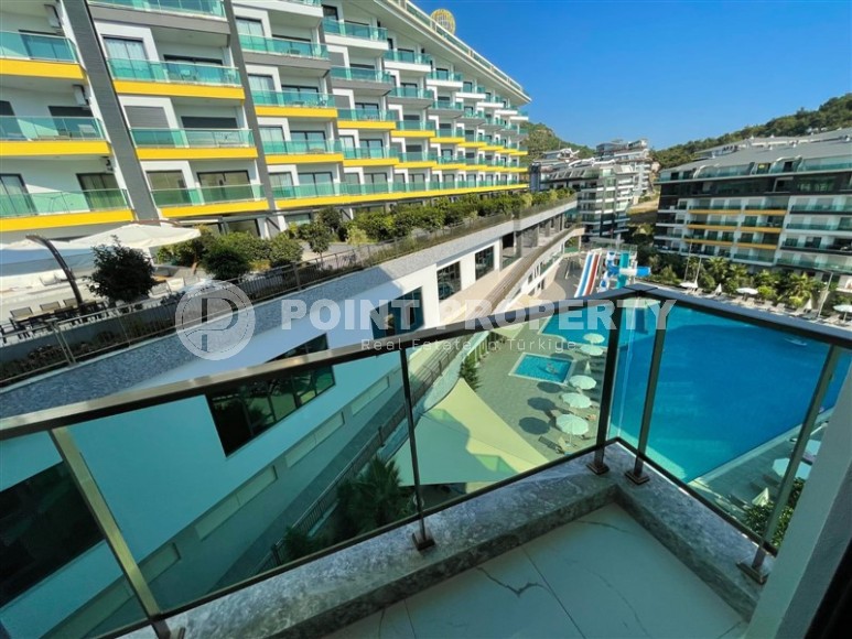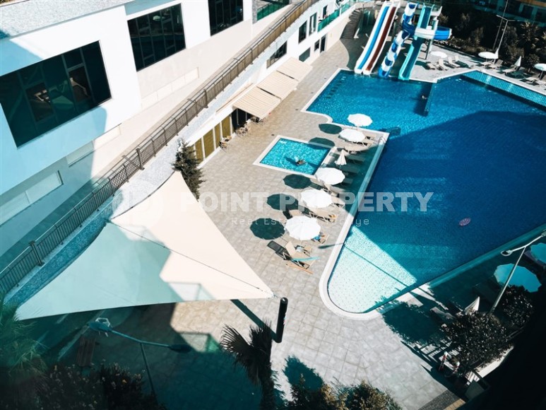 The residential complex, on the 3rd floor of which the apartment is located, was built in 2021, and, like many modern residences, has a developed leisure infrastructure - a luxurious infinity pool overlooking the sea, children's pool, water park, bowling alley, fitness center, hammam, tennis court, playground, mini-club, games room with billiards and table tennis. For security purposes, 24-hour security is installed on the territory, and ground parking is provided for car owners.