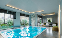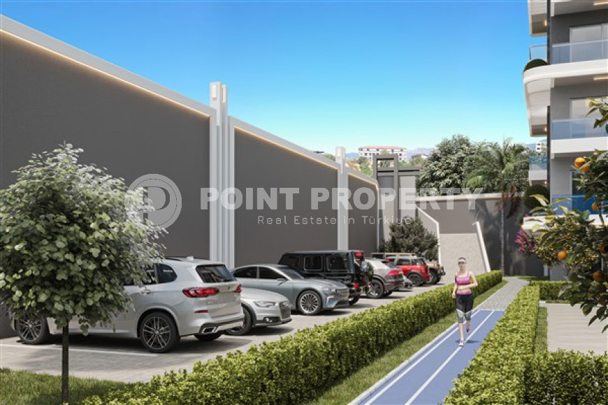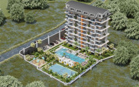 The site where construction is taking place is located 400 meters from the center of Alanya's calm, cozy Tosmur district, where there is absolutely everything for a comfortable life – shops, bakeries, pharmacies, cafes, restaurants, bank and communication branches, public transport stops. This part of the city has many well-groomed recreation areas and green squares, a beautiful park near the mountain river Dim-chay and a beautiful landscaped embankment, from which the apartments are only 500 meters away. The beach of the Tosmur district is quite large and well equipped for vacationers, with crystal clear cool waters and picturesque panoramas of the Taurus Mountains.