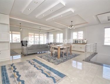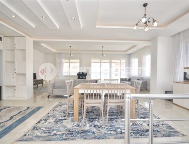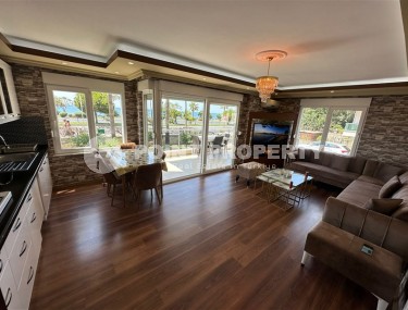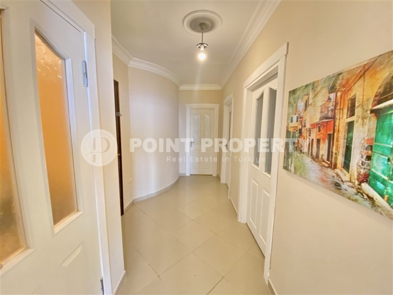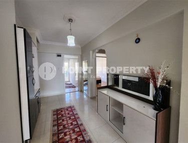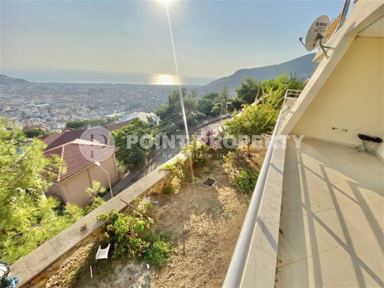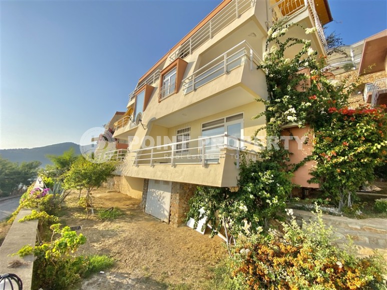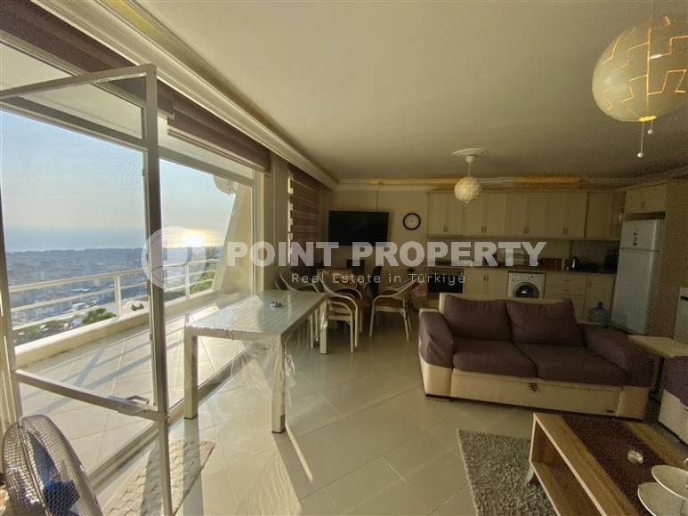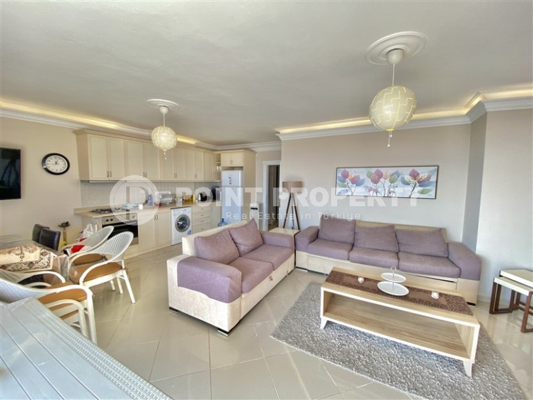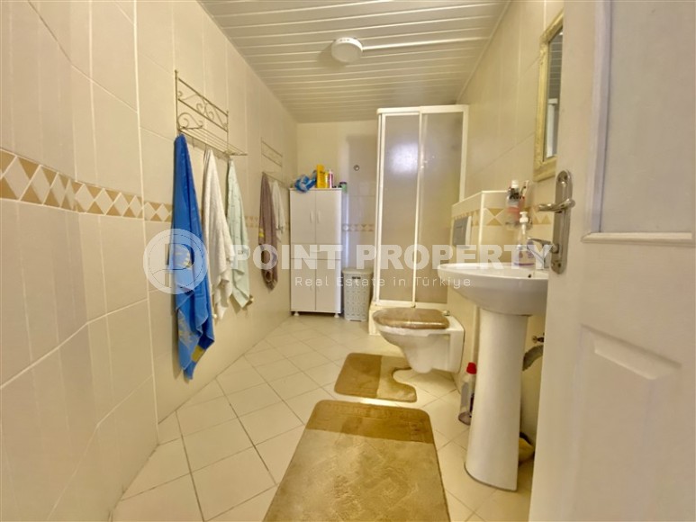 In the elite, quiet area of Alanya - Bektas, on a mountain with breathtaking views of the sea, the port and the Alanya fortress, an atmospheric residential complex was built in 2005, cascading on picturesque hill. An apartment is for sale on the 1st floor in one of its buildings, so if you are inspired by picturesque landscapes, panoramas of the sea and mountains, you should pay attention to this comfortable apartment. Its total area is 110 m2, the 2+1 layout consists of a living room combined with a kitchen, two bedrooms, two bathrooms and two open view balconies. The apartment is bright and cozy, with a predominance of warm sand tones in the interior. In the center of the living room there is a comfortable seating area, with soft sofas and a coffee table; closer to the kitchen there is a dining table. The classic, practical kitchen is equipped with a refrigerator, washing machine and oven. From the living room there is access to a spacious panoramic balcony, from where, in full view, you can see the city, the endless sea and the symbol of Alanya - Mount Kale. The cozy, bright bedrooms are equipped with comfortable beds, and one of the rooms has compact bunk beds. In addition, the apartment has a set of garden furniture for the terrace, where the new owners can spend time pleasantly, enjoying the tranquil atmosphere and picturesque views.