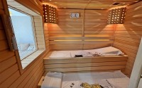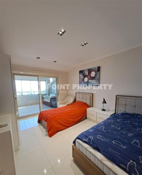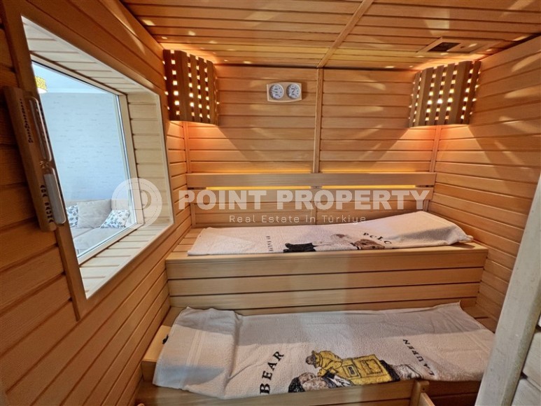 Dream of a comfortable apartment by the sea? Just such an option appeared in our portfolio - a large two-level 4+1 apartment on the 11th floor with an attic, in the modern area of Alanya - Cikcilli. The apartment layout, with a total area of 250 m2, includes an American kitchen, living room, four bedrooms, five bathrooms, two balconies and a panoramic terrace overlooking the city and the sea. In addition, on the 2nd floor of the duplex there is a spacious living room, a compact kitchen and a sauna. The apartment is bright and atmospheric, with a laconic modern design. The living room, with panoramic windows, is successfully divided into several functional spaces - two recreation areas with a comfortable sofa, armchairs, coffee tables and a cabinet, a kitchen equipped with the latest technology and a compact dining area by the window overlooking the sea. The bedrooms have soft beds, bedside tables, dressing tables and wardrobes, and the salon on the 2nd floor has a cozy lounge with sofas and armchairs. The spacious glazed terrace has an automatic sliding roof and recreational spaces with sun loungers and massive wicker furniture.