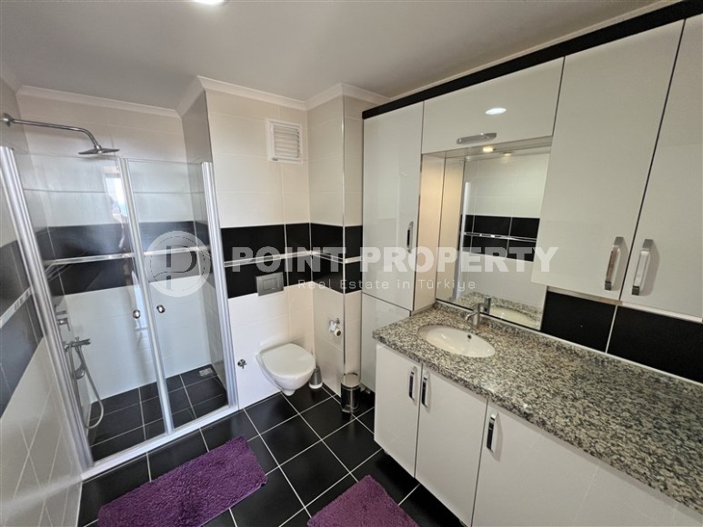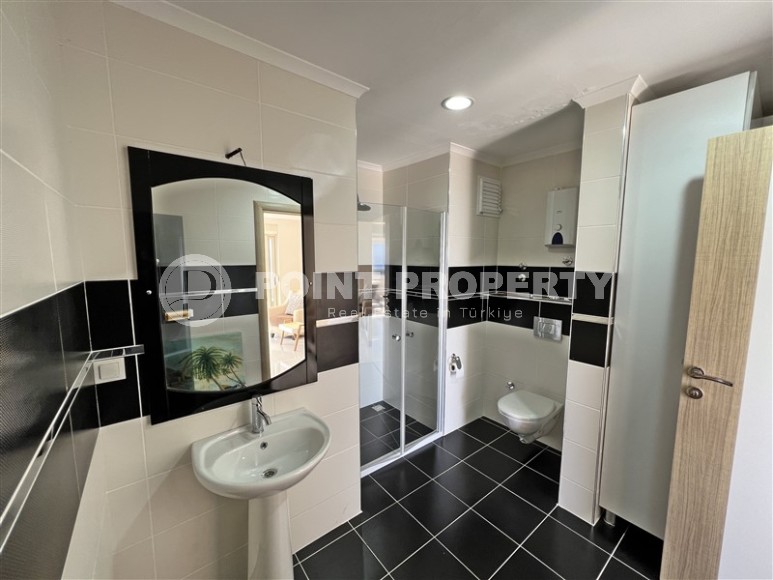 Furnished duplex with a 3+1 layout, ready to move in, 350 meters from the Mediterranean Sea in the Mahmutlar area.