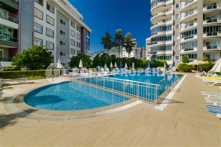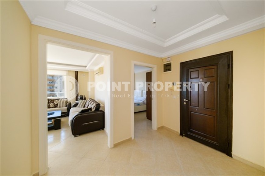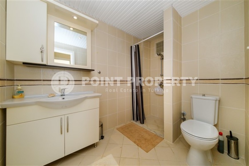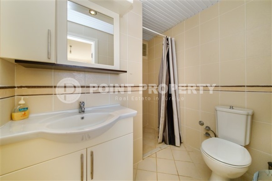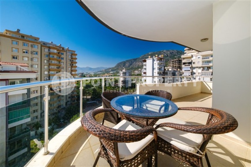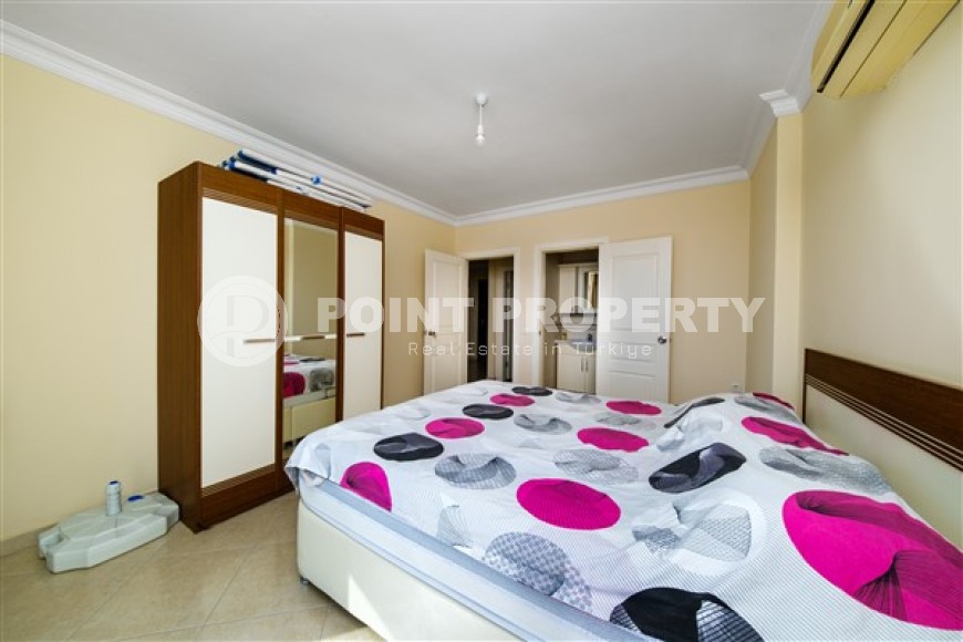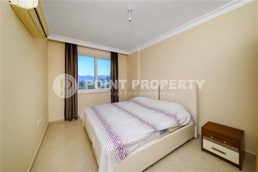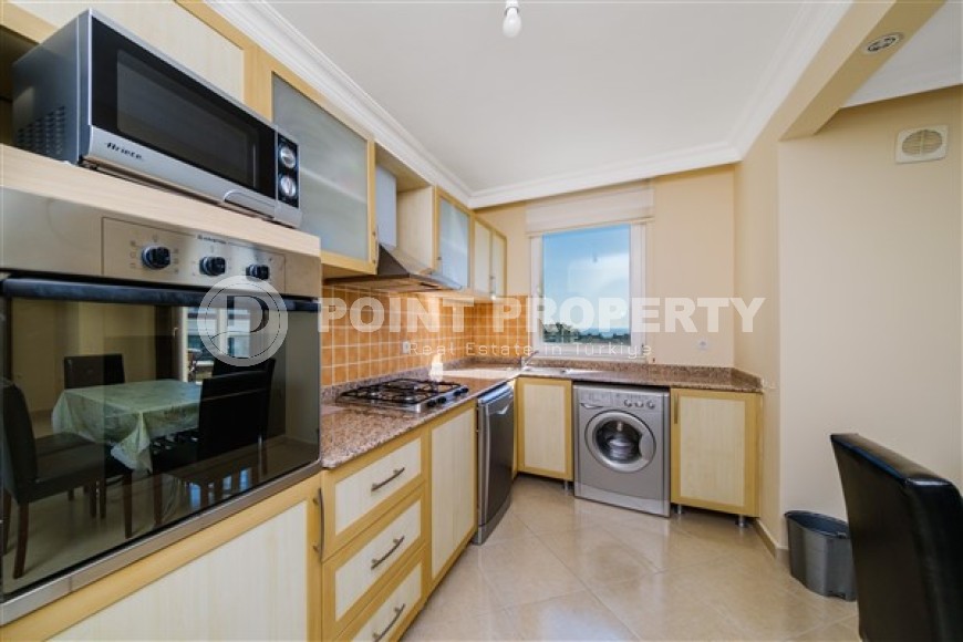 A comfortable apartment, fully equipped with furniture and household appliances, is for sale at a very reasonable price. It is located one kilometer from the center of the modern, developed area of Alanya - Mahmutlar. This is one of the few parts of the city where high-rise development is allowed, and although the apartments are located on the 5th floor, the balconies offer picturesque panoramic views of the sea and the city. Apartment 2+1 has an area of 110 m2 and consists of a living room combined with a kitchen, two bedrooms, two bathrooms and two open balconies. The design of the rooms is classic for Turkish apartments - with warm, calm shades in the interior, with a minimum of bright accents and soft ceiling lighting. The living room is equipped with soft sofas, a coffee table and a dining table; the bright, spacious kitchenette is equipped with a spacious refrigerator, washing machine, dishwasher and oven. From the salon there is access to a panoramic balcony, where a small seating area with compact wicker furniture is organized. The bedrooms have comfortable beds, wardrobes and bedside tables, and the bathrooms are equipped with showers.