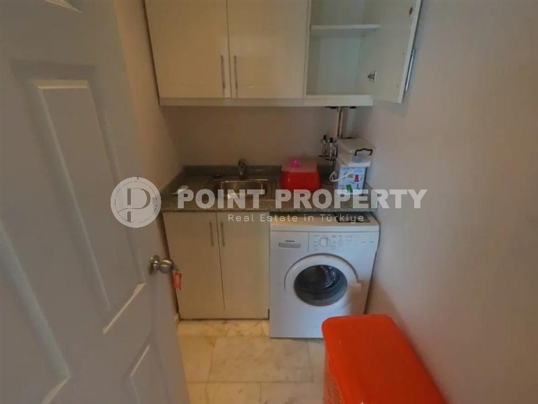 Spacious furnished 4+1 apartment with a glazed balcony, three bathrooms and quality furniture in the prestigious Kargicak complex, only 2300 m from the sea and 2500 m from the center.