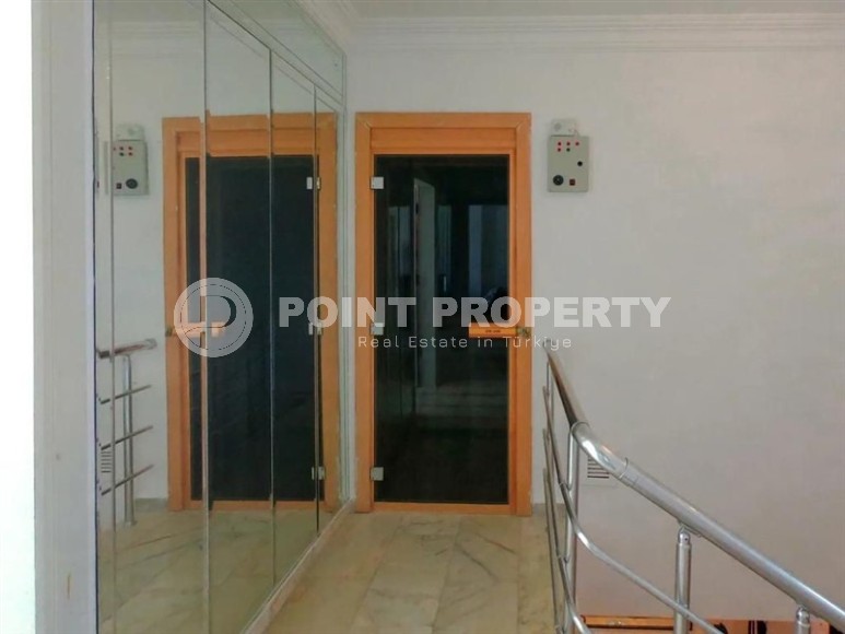 Do you dream of moving your whole family to the Mediterranean coast of Turkey, admiring the incredibly beautiful sunsets and enjoying a comfortable beach holiday? If this is the case, then we are pleased to announce that in the modern area of Alanya - Mahmutlar, on the first line from the sea, a spacious two-level apartment is for sale, located on the 10th floor with an attic, in a residential complex built in 2007. The total area of the duplex is 200 m2, the layout includes a living room combined with a kitchen, four bedrooms, two bathrooms, a sauna, a compact laundry room, a large glazed balcony, and a panoramic outdoor terrace overlooking the sea. The apartment is bright and cozy, with a modern, laconic design and bright interior. The living room is equipped with a couch, a coffee table and a side table. The practical kitchen is equipped with the latest technology. The bedrooms have comfortable beds and furniture, and one of the rooms is used as a relaxation area, with comfortable armchairs and a sofa. The main advantage of these apartments is that each room has access to a balcony or terrace, where cozy recreational areas are organized, with garden furniture, swings, soft chairs and sun loungers.