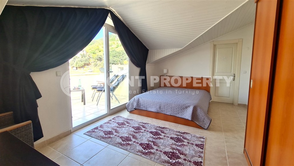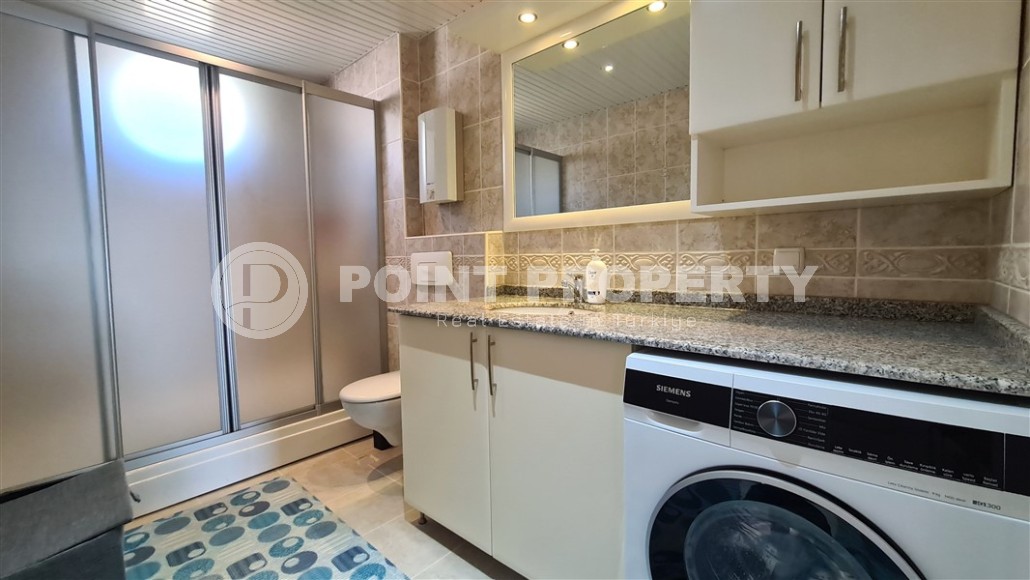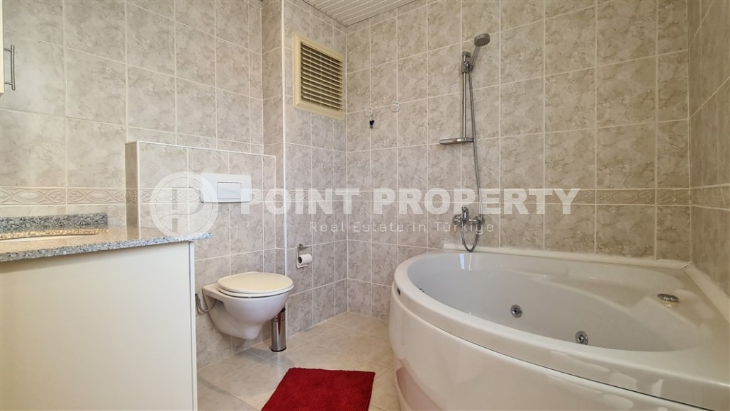 A comfortable two-level apartment a few minutes drive from the sea and the center of Alanya is an excellent option for those who decide to move the whole family to the coast of the Turkish Riviera. Spacious, with a total area of 220 m2, it has a layout combined with a kitchen, four bedrooms, three bathrooms equipped with showers and Jacuzzis, two open balconies and a panoramic terrace overlooking the city and the sea. The apartment has a high-quality renovation, modern design, all necessary furniture and household appliances. The living room is equipped with a massive corner sofa, coffee table and dining table. The snow-white kitchen is equipped with a refrigerator, dishwasher, hob and oven. The bedrooms are equipped with soft beds, bedside tables and spacious wardrobes, and when The entrance has a built-in closet for shoes, clothes and personal belongings. Relaxation areas with sun loungers and practical garden furniture are organized on the balconies and terraces, so new owners just have to finalize the deal and enjoy a comfortable atmosphere.