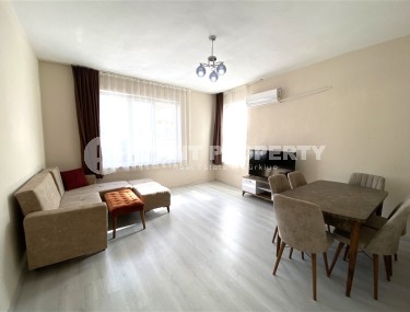 This section presents a small 1+1 apartment with a luxurious location almost on the very shore of the Mediterranean Sea, near the famous Cleopatra Beach, in the center of Alanya. Its total area is 60 m2, the layout consists of a spacious living room combined with a kitchen, a bedroom, a bathroom equipped with a shower and an open balcony overlooking the city streets and the sea. The apartment is bright, with traditional warm shades in the interior. The living room is equipped with a massive corner sofa, a spacious wardrobe, a coffee table, a chest of drawers and a dining table. The practical kitchen is equipped with a refrigerator, touch-screen surface, washing machine and dishwasher. The bedroom has a soft bed, bedside tables and a wardrobe, and on the balcony there is a set of compact garden furniture.