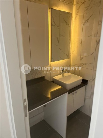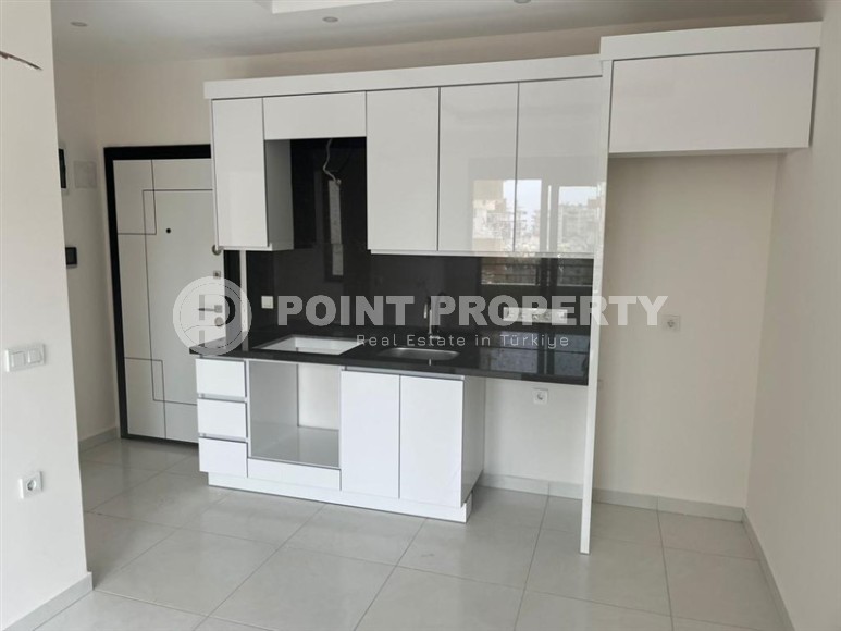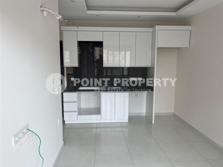 In the center of the popular area of Alanya - Mahmutlar, the construction of a small residence was completed in 2023, and on the 3rd floor there is an apartment for sale, which is perfect for permanent residence or summer holidays holidays and for successful rentals. Its total area is 55 m2, the 1+1 planning solution consists of a living room, a bedroom, a bathroom and an open balcony combined with a kitchen. The apartment is offered with high-quality finishing - suspended ceilings, ceramic flooring, kitchen units, shower cabin and high-quality plumbing fixtures in the bathroom.