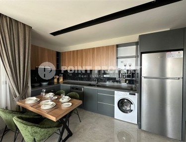 For those who want to purchase secondary housing in a modern small complex, which was commissioned in 2021, with a convenient location 350 meters from the sea and 200 meters from the center of the Avsallar district. Current offer: an apartment in the beloved 1+1 layout with an area of 57 m2 is put up for sale by the owner fully furnished. The apartment is located on the second floor and, in addition to a bathroom, also has a spacious balcony. In the bedroom you will find a bed and a spacious wardrobe. The bathroom is equipped with a flowing water heater, and the living room has a standard sofa with a kitchen table.