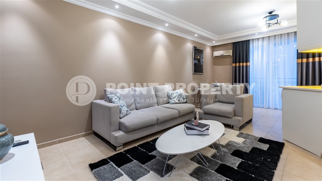 In this section we present to your attention a small comfortable apartment, with good repair, modern design, furniture and household appliances, which is perfect for both your own living and for renting out. It is located on the 2nd floor in a house built in 2005, in the center of a quiet, peaceful area of Alanya - Tosmur. This part of the city is distinguished by its excellent ecology, abundance of greenery, cooler microclimate, picturesque landscapes on the embankment of the Dim-chai mountain river, many landscaped parks, squares and citrus orchards.