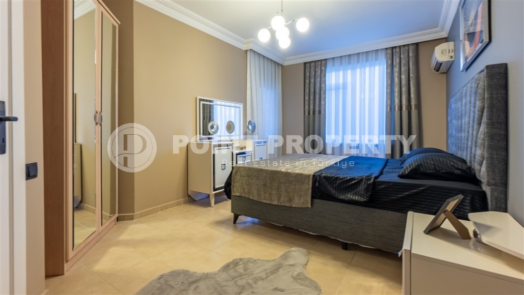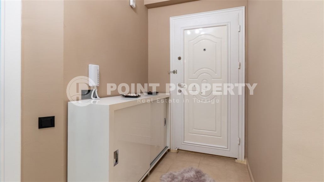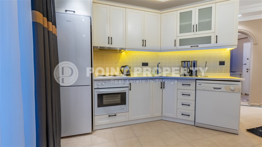 The building in which the apartment is located has a swimming pool and a gazebo in the garden. A manager works in the complex to resolve all everyday issues, and the monthly fee for maintaining the territory is only 500 Turkish lira.