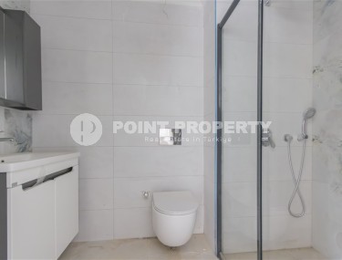 The numerous advantages of the apartment presented in this section include: modern design, new furniture and household appliances, rich internal infrastructure of the complex in which it is located, excellent location within walking distance from the center of Alanya and the famous Cleopatra Beach, as well as a very reasonable price. An apartment with such characteristics is almost universal and is suitable for both your own living or summer holidays, and for successful rental. It is located on the 1st floor in a residence built in 2022 and has a total area of 50 m2. The 1+1 planning solution consists of a living room combined with a kitchen, a bedroom, a bathroom equipped with a shower and a balcony. The design of the rooms is calm and laconic, with warm light shades and a minimum of bright accents. The living room is equipped with a comfortable corner sofa, an original coffee table, a side table and a dining table with soft chairs. The compact kitchen is equipped with a refrigerator, dishwasher and oven. The bedroom has a large bed, dressing table and a spacious wardrobe, so the apartment is completely ready for the arrival of the new owners.