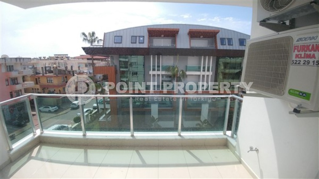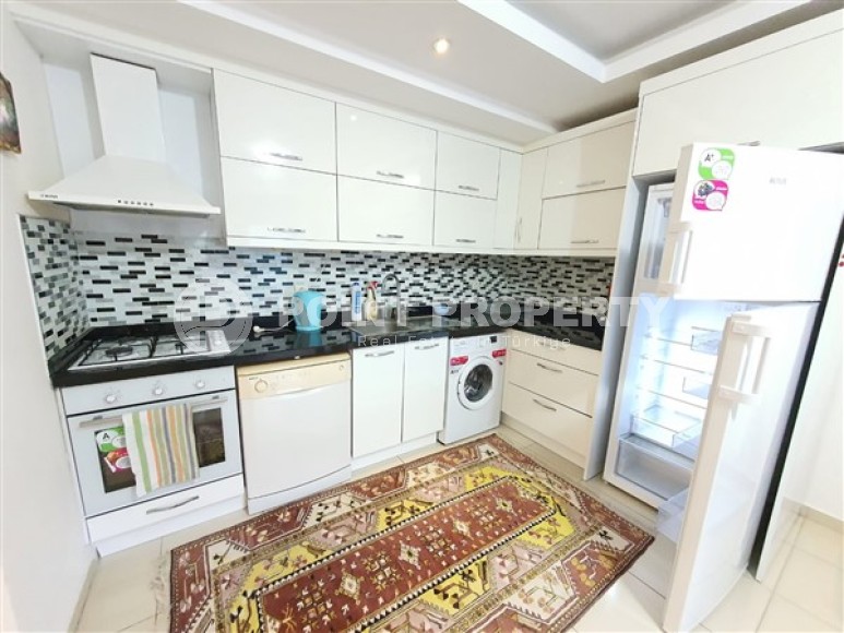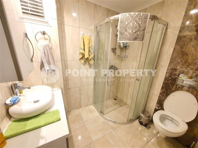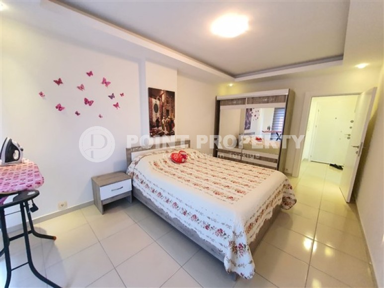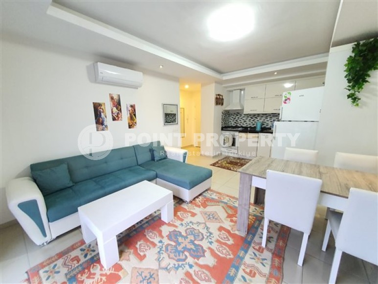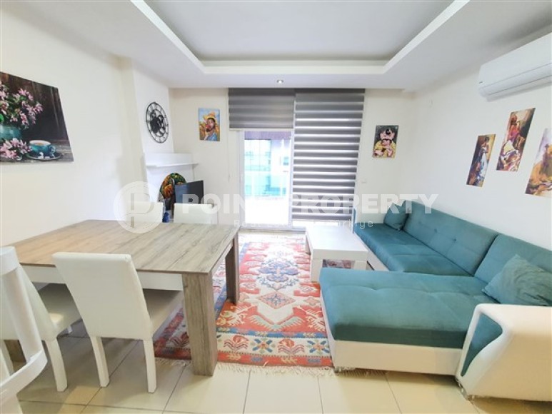 Point Property company presents to your attention small furnished apartments with a 1+1 layout, with a total area of 65 m2, located on the 3rd floor single-block residential complex built in 2017 in the area of Alanya - lower Oba. The layout of the apartment includes: a kitchen combined with an American-style living room, one bedroom, one bathroom and one balcony. The kitchen area is equipped with a built-in unit with a sufficient number of storage compartments, a work surface made of natural stone, and necessary household appliances. The salon has a large corner sofa, which can also be used as an extra bed, a coffee table, a TV with a cabinet underneath, a dining table for four people, and air conditioning. The room has access to a balcony, which can also be used as an additional recreation area. The bedroom has a comfortable double bed, bedside tables, dressing table, wardrobe for storing personal belongings, air conditioning, panoramic doors with access to a shared balcony with the living room, and a mechanism with Roman blinds. The bathroom is equipped with the necessary set of furniture, plumbing, shower, walls and floor ceramics.