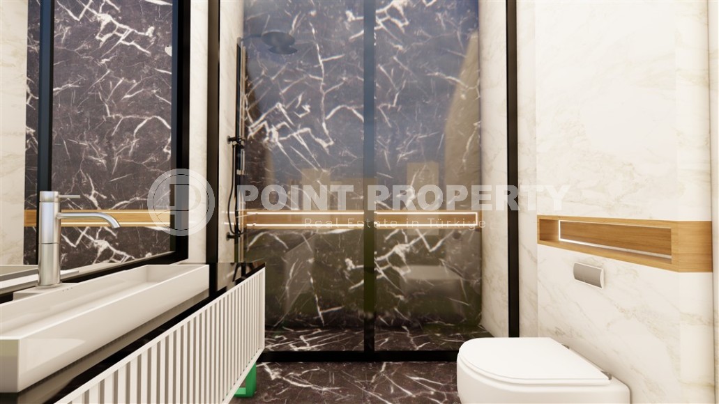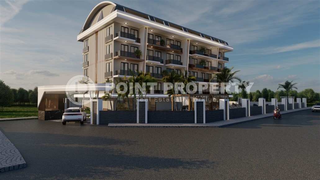 The popularity of Alanya is growing from year to year, the territory is expanding, new neighborhoods, modern residential complexes and related social infrastructure facilities are appearing. The picturesque area of Upper Oba is one of the new developing areas. In June 2024, the construction of a boutique residence will be completed here, and an apartment on its 2nd floor will be put up for sale. Small, with a total area of 54 m2, it has a layout combined with a kitchen, a living room, a bedroom, a bathroom and a balcony. The interior decoration of the apartments is represented by suspended ceilings with spot lighting, flooring, entrance and interior doors, kitchen units and high-quality plumbing - in this form the apartment will be transferred to the owners, which significantly facilitates the renovation process. And our professional after-sales service department will help you decorate the design in any style you like, order furniture and appliances, connect communications and solve all everyday issues.