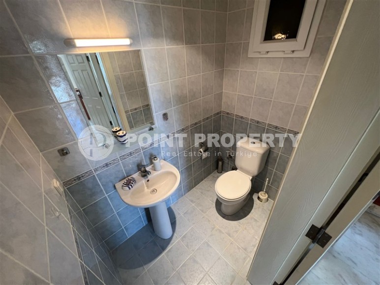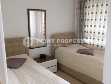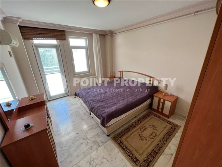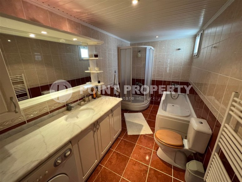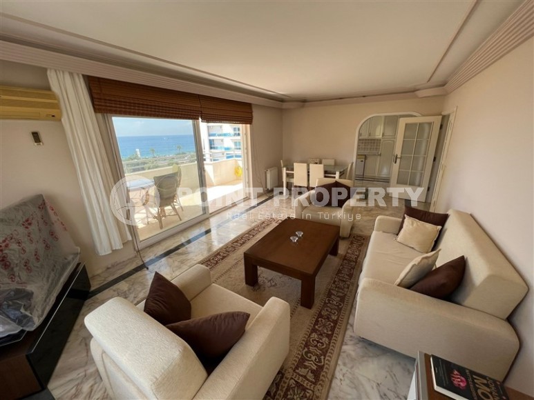 If you are looking for a comfortable apartment by the sea, for summer holidays or permanent residence, in close proximity to the beach and all necessary urban infrastructure, this ad will certainly interest you. A spacious apartment, equipped with all necessary furniture and household appliances, is for sale. It is located on the 5th floor in a residential complex built in 2007, has a total area of 125 m2, and consists of a kitchen, living room, two bedrooms, two bathrooms, one of which is equipped with a shower and a bathtub, and two balconies with a view on the sea. The design of the rooms is calm and laconic, with a predominance of light warm shades in the interior and elements of wood, which creates a homely, cozy atmosphere. The spacious living room is equipped with massive beige armchairs, a sofa, a classic coffee table, a side table and a large dining table. The large, bright kitchen is equipped with a refrigerator, dishwasher and oven. The bedrooms are equipped with comfortable beds, bedside tables, dressing tables and wardrobes, and on the balcony, which has access to the living room, there is a cozy seating area with nice wicker furniture.