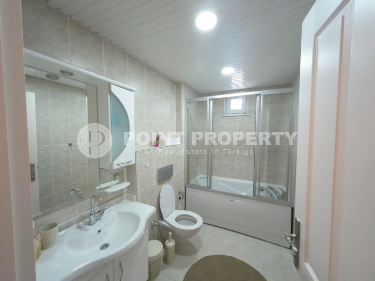 Comfortable area of Alanya - Oba - a combination of developed infrastructure and comfort. Nice low-rise buildings with well-kept courtyards, green parks and public gardens, a luxurious embankment with fountains, fragrant flower beds and numerous recreation areas, a long sandy beach with crystal clear water, a special resort atmosphere - this is all - the Oba district. If you want to live all year round as many only dream of while waiting for a vacation - to enjoy the warm sea, fresh mountain air and the gentle Turkish sun to the fullest, we recommend that you pay attention to apartments in this part of the city. The portfolio of the Point Property company has an excellent option - a spacious two-level apartment with furniture and household appliances in the very center of the Oba district and a short walk from the beach. Considering the successful 3+2 layout and large total area (200 m2), these apartments are perfect for a large family with children.