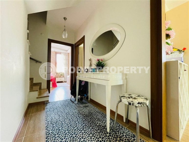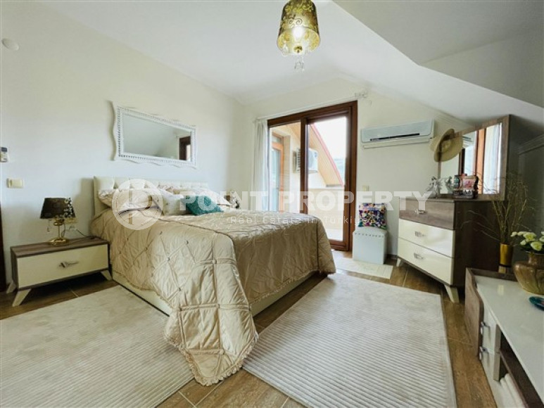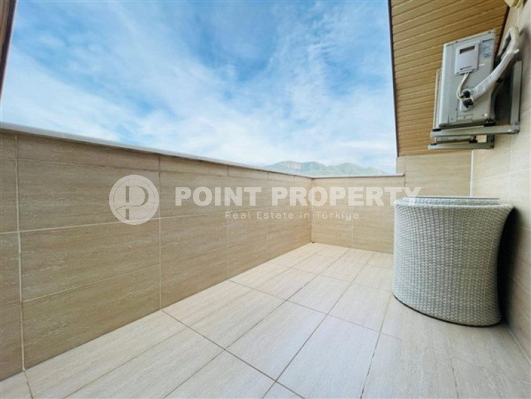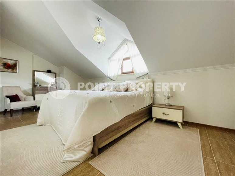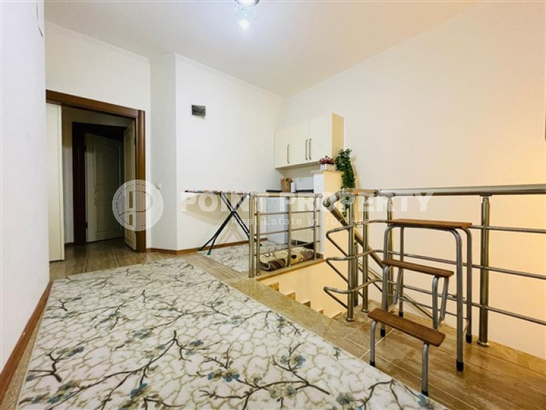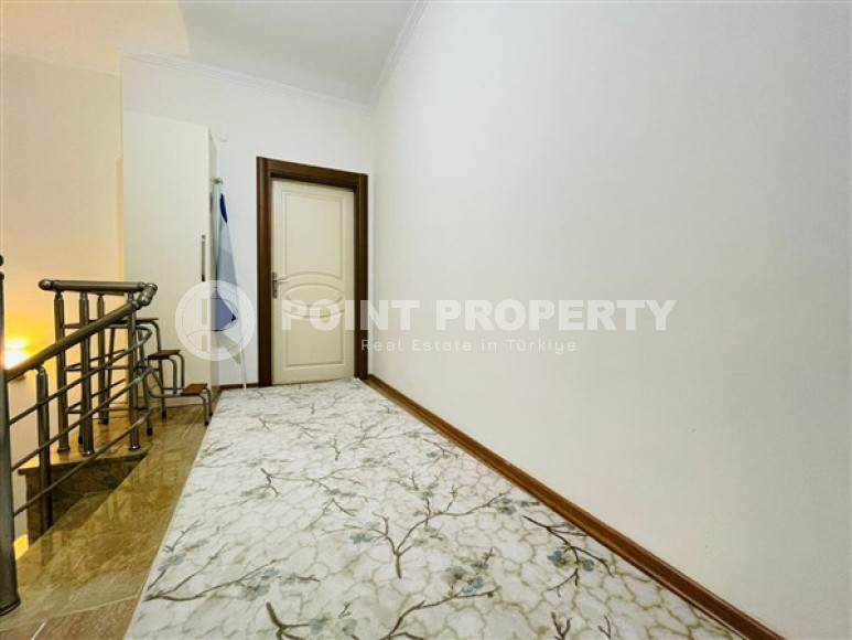 The owner has put up for sale a spacious duplex penthouse, 5+1 layout, in a complex built in 2013 in the Alanya area – Both. On the 5th-6th floor, at 230m² accommodated: a large living room, 5 bedrooms, 3 fully equipped bathrooms (one on each floor and the third in the parent bedroom). The living room on the lower floor is combined with a spacious kitchen with a full package of household appliances. It also has a dining area for a large family. The apartments have two spacious balconies (one of which is glazed) on the lower floor and two terraces on the upper floor. They will delight you with views of the majestic and mighty Taurus Mountains. The apartment has a spacious hallway with a wardrobe for outerwear. A comfortable granite staircase connects the floors. There is a small kitchen area in the second floor hall. The apartment has a high-quality renovation, it is sold with furniture, household appliances, home textiles and interior items, as shown in the photo.