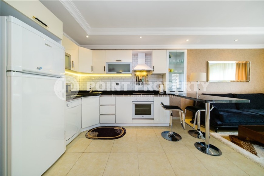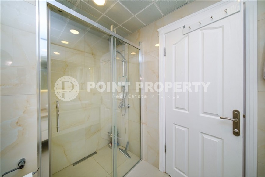 On the territory of the building in which the apartment is located, a swimming pool and a sauna are available to residents. The building is surrounded by a green garden and is located in the very center of Mahmutlar, where there is absolutely everything for a comfortable life - supermarkets, bakeries, pharmacies, cafes, restaurants, fitness clubs, beauty salons, children's educational institutions, bank branches and communications. The distance from the apartment to the long sand and pebble beach and the beautiful promenade, with bicycle paths, children's and sports grounds, benches and gazebos, is only 150 meters, which allows the new owners to spend maximum free time by the sea.