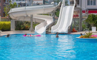 An additional bonus when purchasing this apartment is the favorable location of the complex: 150m separates it from the landscaped embankment and the beach, and 100m from the center of the area. On Thursdays, a fragrant and colorful farmers market takes place under the windows of the residence. In the neighboring houses there is a large ŞOK chain store, a professional sports complex, cozy cafes, a pharmacy, ATMs and other social facilities. This location allows you to live a couple of minutes from the sea and have at your fingertips all the diverse infrastructure of a developed area. The complex is located in the Alanya area – Tosmur, cozy, calm and comfortable.