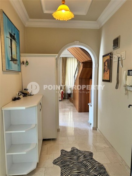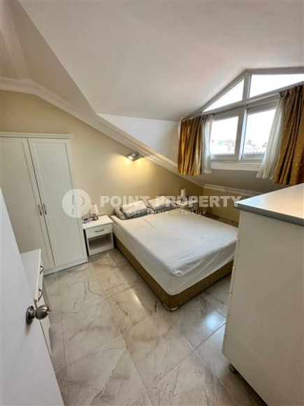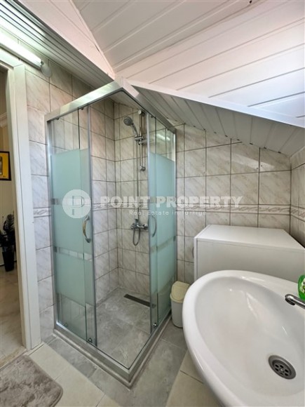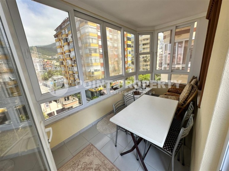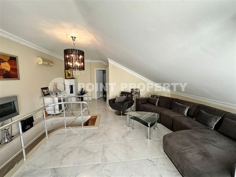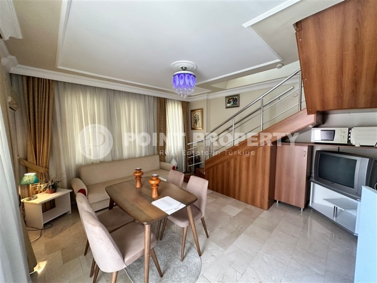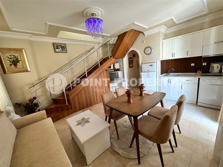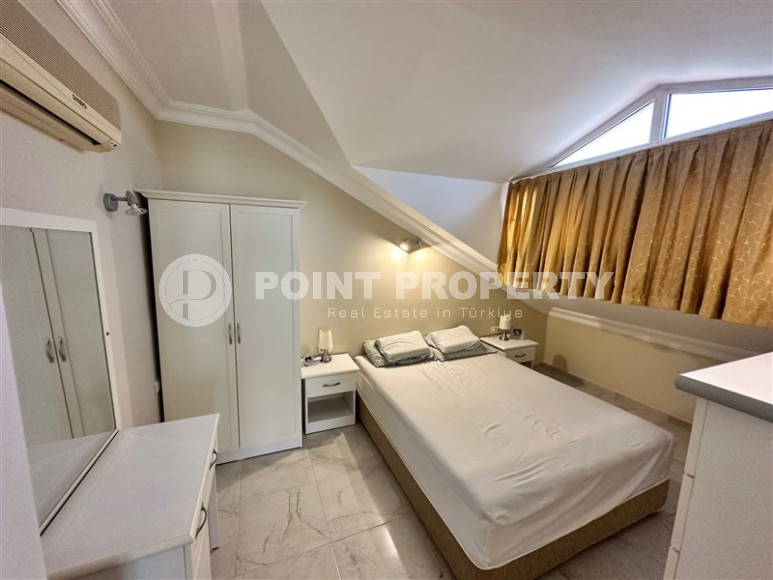 Point Property's portfolio has been expanded with a comfortable, ready-to-move-in apartment, which is perfect for those looking for affordable apartments in the center of Alanya, within walking distance of the sea. A two-level apartment 2+1, with a total area of 120 m2, is located on the 4th floor with an attic, in a house built in 2003. On the 1st floor of the duplex there is a living room and bedroom combined with a kitchen, on the 2nd there is a spacious sitting area with a sitting area, another bedroom, and a spacious open roof terrace. In addition, the apartment has two bathrooms equipped with showers, and two glazed balconies overlooking the city and mountains. The design of the apartment is calm and laconic, with a combination of warm light shades and wood in the interior, which creates a feeling of home comfort. The living room is equipped with a soft sofa, coffee table, side table and dining table, the compact snow-white kitchen is equipped with a refrigerator and dishwasher. The bedrooms are equipped with comfortable beds, wardrobes, cabinets and dressing tables, and on one of the balconies there is a relaxation area with practical garden furniture. The new owners will only have to equip a recreational area on the terrace, install sun loungers and sun umbrellas, soft sofas or stylish hanging chairs.