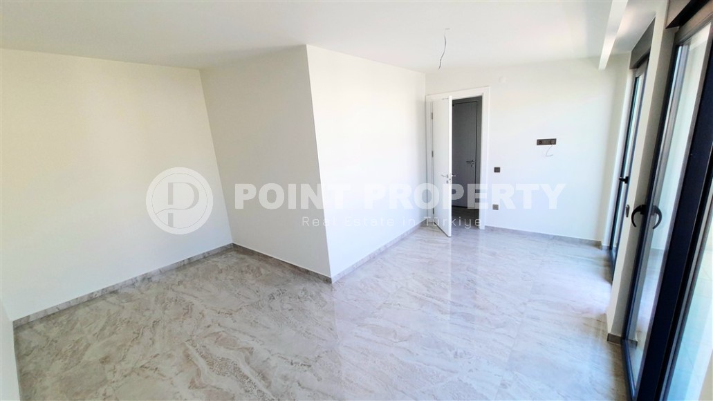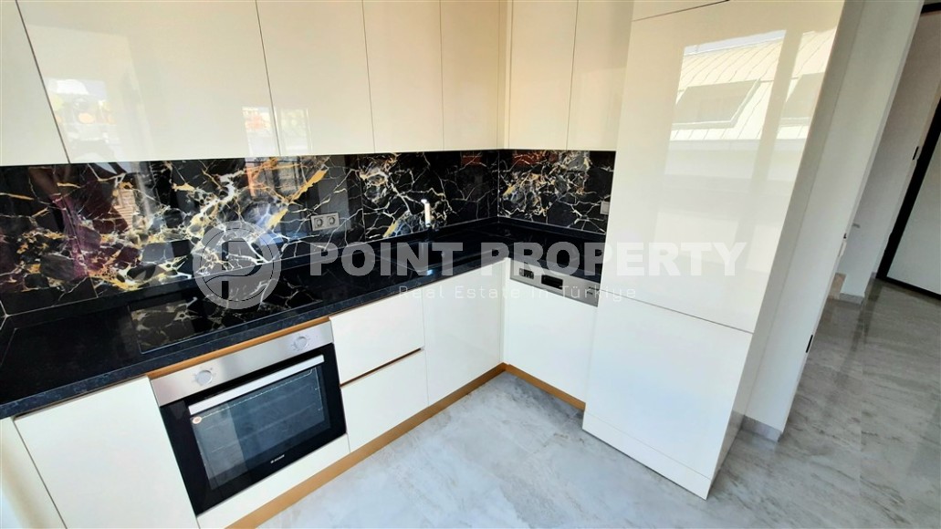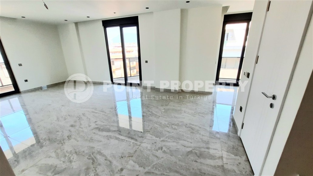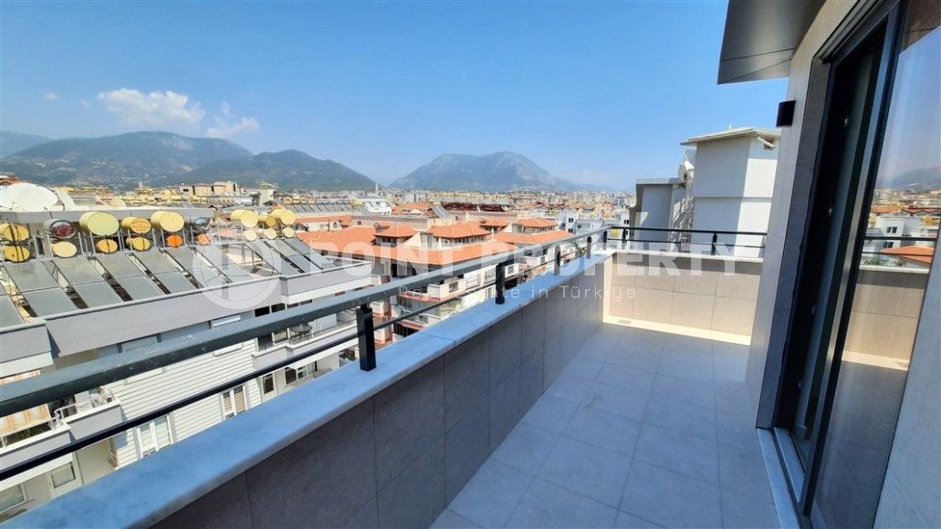 The popular area of Alanya - Lower Oba - is a cozy corner of Europe in the middle of a prestigious Mediterranean resort. It has long been inhabited and landscaped - well-groomed streets, nice low-rise buildings, green parks and squares, a beautiful embankment with fountains, palm trees and flowering flower beds make this part of the city comfortable both for relaxation and for living all year round. The real estate here is represented not only by old buildings, but also by new residential complexes, one of which was put into operation at the beginning of 2023. On its 5th floor with an attic, a 2+1 apartment with a total area of 130 m2 is for sale, the layout of which includes a separate kitchen, a spacious living room, two bedrooms, two bathrooms, two balconies and an open roof terrace. The apartment has already undergone major renovations, suspended ceilings, air conditioners, high-quality flooring have been installed, a stylish kitchen set is already equipped with built-in appliances. New owners can only bring their design ideas to life, in which they will be helped by the professional employees of the after-sales service department of Point Property, who will take on such everyday issues as ordering furniture, connecting communications or insuring the property.