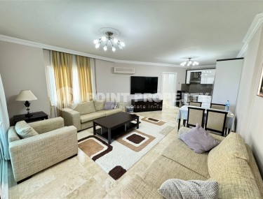 A stylish and cozy 2+1 apartment with an area of 110 m² is located on the 2nd floor of a residential complex in Tosmur. The apartment with good furniture includes two spacious bedrooms, a bright living room combined with a kitchen, two bathrooms and two balconies with a pleasant view.