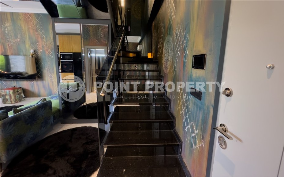 Stylish duplex with designer renovation, on the first line from the sea, in the prestigious area of Alanya - Kargicak