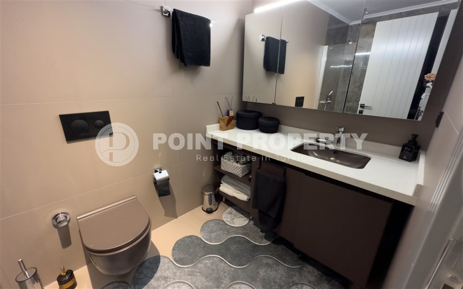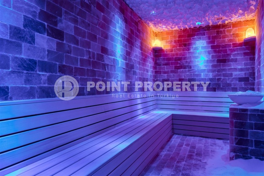The apartment is located in a modern residential complex built in 2020. Like many modern residences, it offers a lot of additional services: an outdoor swimming pool with water slides, an indoor swimming pool, a fitness club, a sauna, a hammam, a jacuzzi, a spa center, a children's park, a games room and underground parking. For security purposes, CCTV cameras and 24-hour security are installed on the territory, and an additional generator is provided for rare cases of emergency power outages.