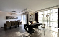 The apartment presented in this section will certainly interest connoisseurs of modern trends and stylish, laconic designs; it is perfect for a progressive young family and people for whom practicality, functionality and comfort are important. The apartment layout, with a total area of 120 m2, has a large living room with a kitchen, divided by a bar counter into a dining area and a living room, two bedrooms, two bathrooms and two balconies. The interior of the apartment is light and pleasant, a black sofa, a stylish armchair, a bar counter and a tabletop are successfully combined with white kitchen and living room sets, adding gloss and style, and spot ceiling lighting and panoramic windows create an atmosphere of lightness and comfort. The design of bedrooms and bathrooms is also dominated by a combination of black and white shades, which emphasizes the integrity of the interior. The apartment is located on the 1st high floor and has two spacious balconies with access to the courtyard, where you can organize full-fledged recreation areas with sun loungers or a sitting area.