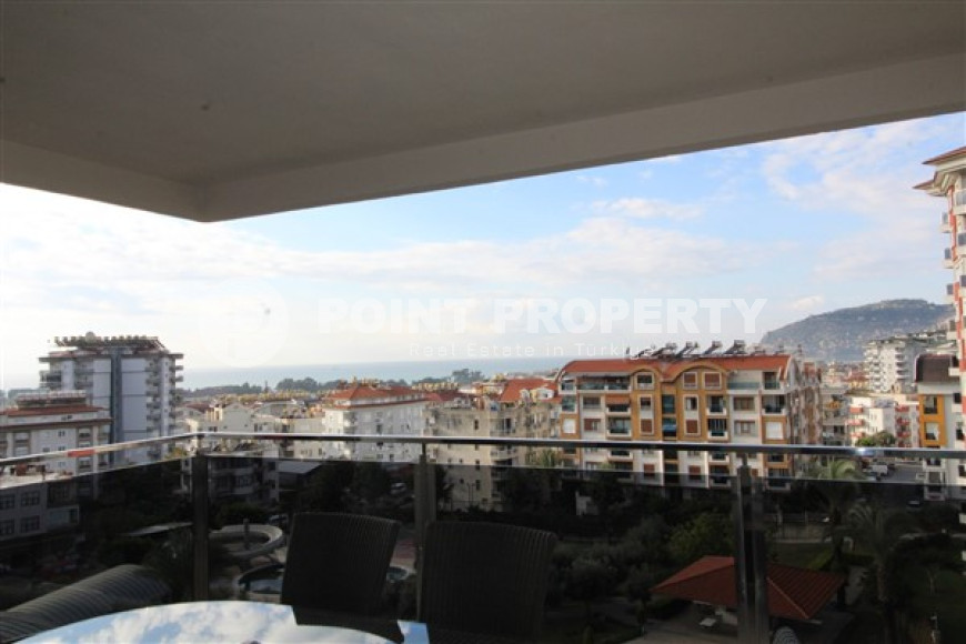 For those seeking a spacious, ready-to-move-in apartment with an excellent location, we suggest considering a three-room apartment with a 2+1 layout and an area of 120 m². The apartment has a living room combined with an American-style open kitchen area, two bedrooms, two bathrooms and two large balconies. The living room has an original shape. The stylish corner kitchen set has a full range of household appliances from good manufacturers and a nice bar counter that separates the kitchen from the relaxation area, where an elegant soft group is installed. The bedrooms have the necessary set of furniture. Bathrooms are of good size and equipped with high-quality modern fixtures. There is a large wardrobe in the hallway. From the large balconies there is a breathtaking view of the endless Mediterranean Sea, the Alanya Peninsula with an ancient fortress. Just from your balcony you can admire the incredible beauty, different Alanya sunsets every day.
