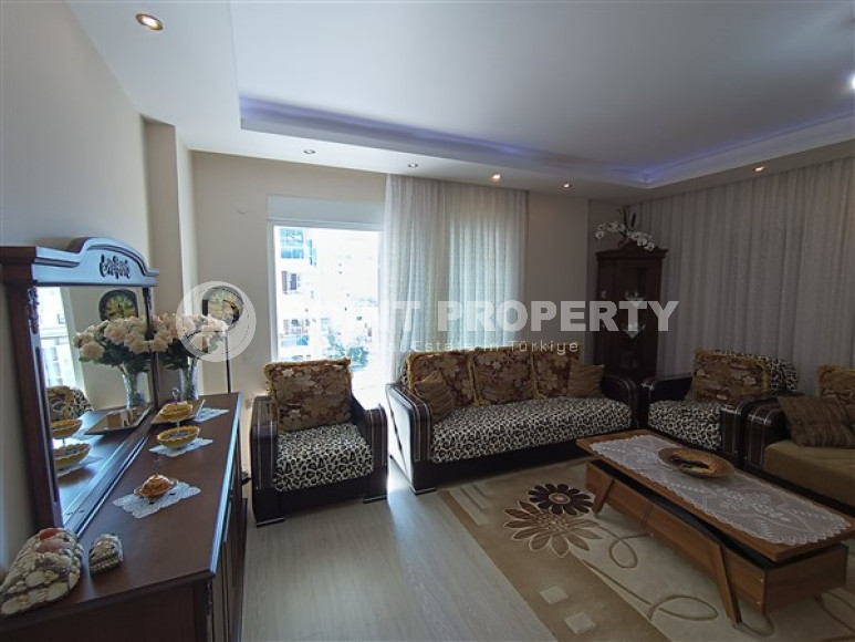 In the meantime, we are ready to offer one of the above-mentioned real estate options in the Tosmur district - a three-room apartment with a 2+1 layout and a total living area of 114 m2. The apartment is located on the fourth floor of a building built in 2018 and is offered for sale by the owner, fully furnished. As for the location of the rooms, here you will see a separate kitchen with a suite and a table for several people for eating. The design of the living room and bedroom is presented in a classic version. In addition, the apartment has two bathrooms and two balconies.