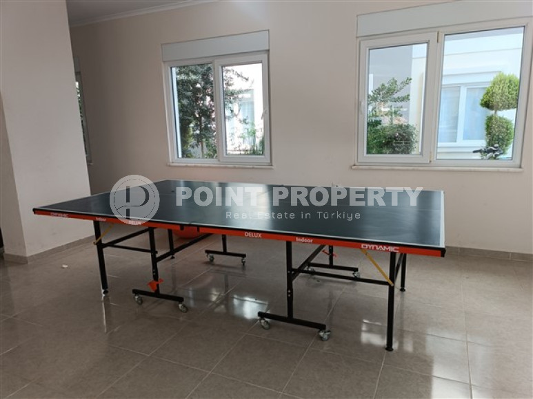 The building's infrastructure, equipped with an elevator, consists of a spacious swimming pool, a children's play area and a gym with exercise equipment. There is parking for vehicles on the territory. The distance from the center of the Tosmur district to your apartment is very short - 350 meters. The Mediterranean Sea and coastal area are 700 meters away. Tosmur is located near the international airport, about forty kilometers away.