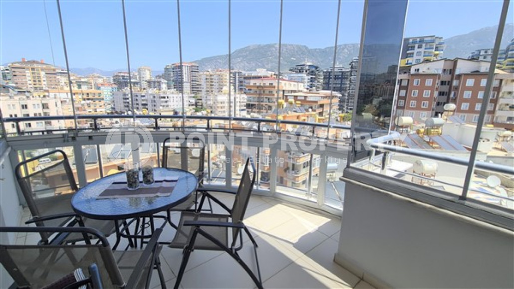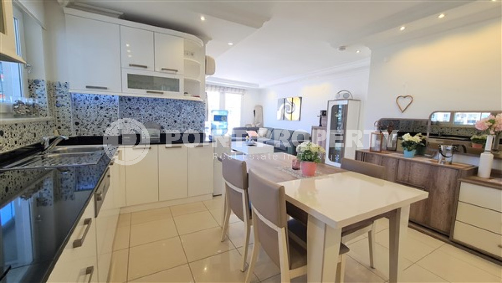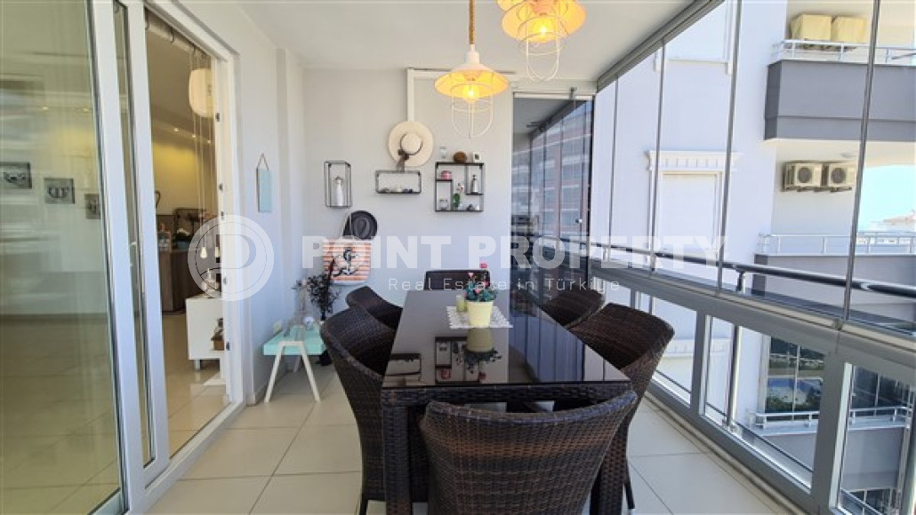 Three-room comfortable apartment with furniture on the 8th floor of the complex, Mahmutlar district