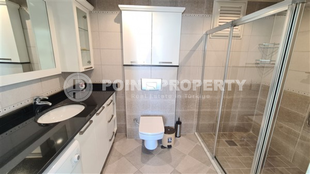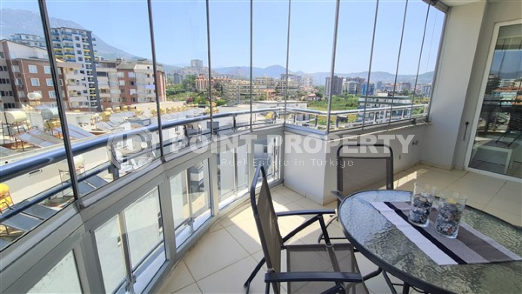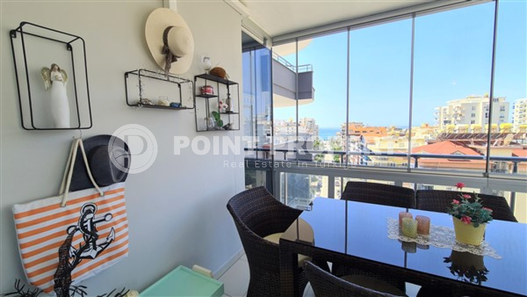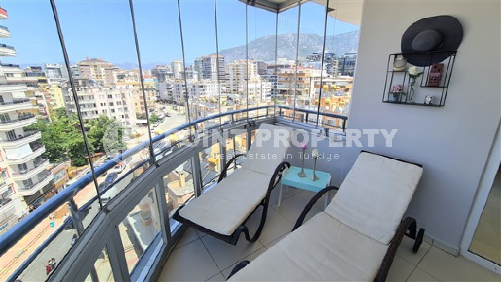 We are happy to offer you a spacious three-room apartment with an area of 100 m2, as well as two bathrooms and two balconies, along with classic bedrooms, a living room with a kitchen. The apartment with a designated 2+1 layout is conveniently located on the high eighth floor. Glazed balconies offer magnificent views of the city's attractions. The residential premises are sold with a full set of furniture of excellent quality: new tables, beds, kitchen sets, household appliances, as well as other interior items and decor, will certainly delight the new owners. Well, even more so, the successful location of this object simply amazes the imagination! You will need to walk 500 meters to find yourself on the beaches of the Mahmutlar region, which are distinguished by their unsurpassed cleanliness and amenities. The central streets with cafes, shops, a farmer's market and other facilities are just 250 meters away.