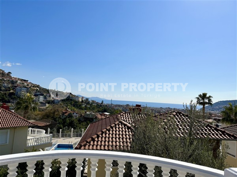 One of the most popular options for sale in the Tepe area are villas. Big and small. Recently constructed and secondary housing stock. Right now we want to offer you a cozy three-room villa with a 2+1 layout: two bedrooms, a living room with a kitchen, two bathrooms. The picture of luxury housing with an area of 120 m2 is completed by panoramic and spacious balconies with a terrace. The two-storey villa is fully furnished. On the ground floor there is a living room with sofas in the seating area and a separately equipped kitchen, equipped with a set of household appliances. Food is served from the kitchen through a special spacious window with a nearby counter and bar stools. The bedrooms are equipped with sofas with mattresses, and the bathrooms are equipped with a hydromassage bathtub.