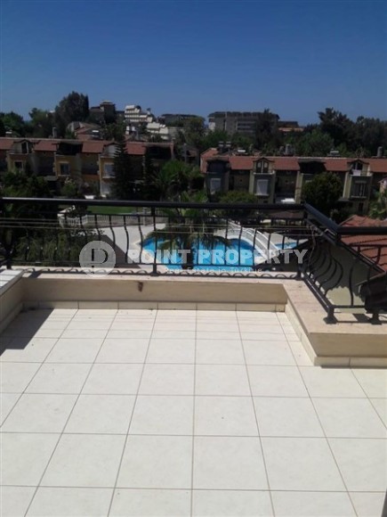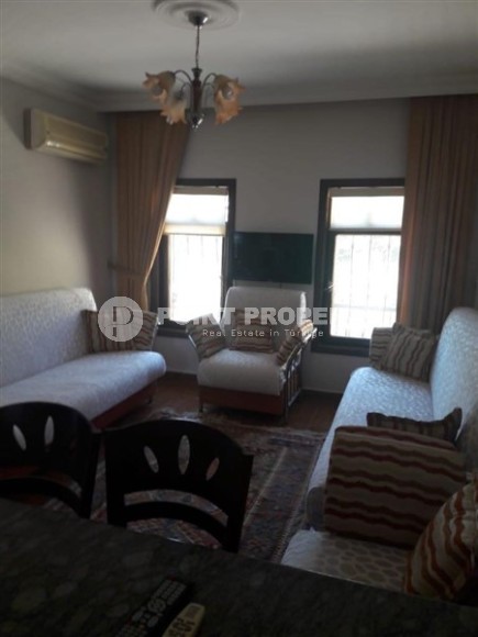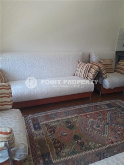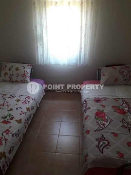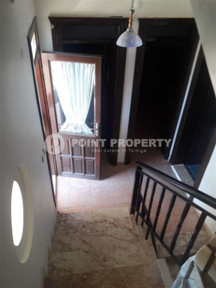 Okurcalar is a quiet, peaceful area of Alanya, which is ideal for lovers of a relaxed lifestyle surrounded by pristine nature. There are shops, cafes and restaurants in the area, but for entertainment it is worth going to the more developed parts of the resort, which is easy to do thanks to convenient transport links. In the center of the Okurcalar district, a 3-storey twin villa built in 2005 is for sale, which is perfect for a country house, as it is located a three-minute walk from the sea. Its total area is 140 m2, the layout includes a kitchen, living room, three bedrooms, two bathrooms, two open balconies and a spacious terrace overlooking the courtyard and pool. The villa is equipped with all necessary furniture and is ready to move in. The living room has soft sofas, an armchair and a dining table, the bedrooms have comfortable beds and spacious wardrobes, and on one of the balconies there is a relaxation area with practical garden furniture.