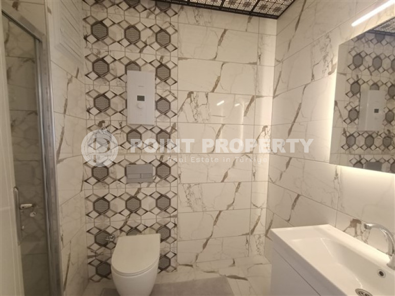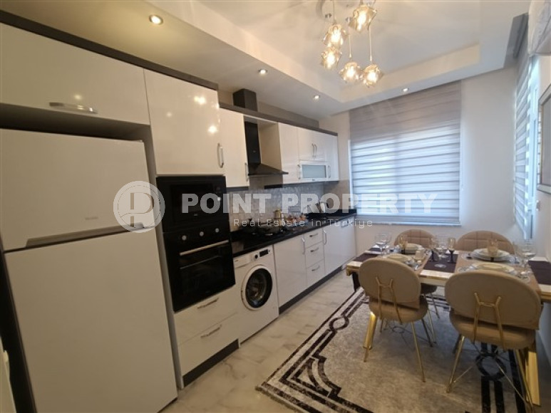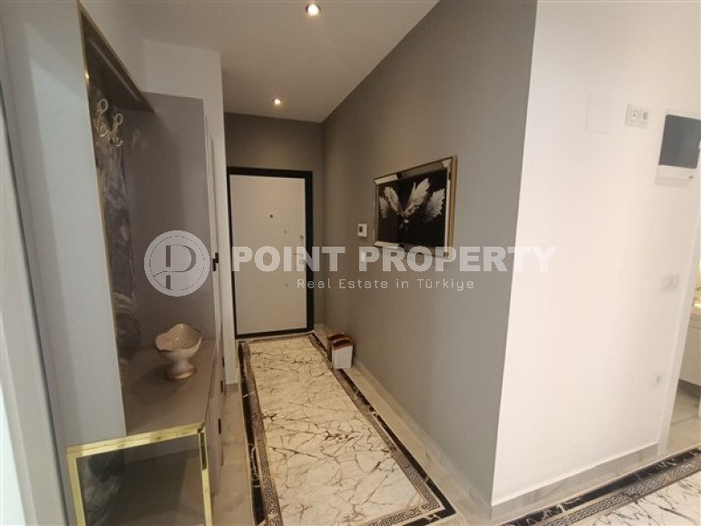 It is in this area that a three-room apartment with a total area of 135m2 is for sale. The apartment is located on the high 7th floor in a residence built in 2021, located between the central streets of Mahmutlar. The infrastructure of this complex is small, but sufficient for permanent residence and will not require high monthly maintenance fees: there is an elevator, gym, sauna, outdoor swimming pool, recreation area and barbecue and a closed area with a garden.