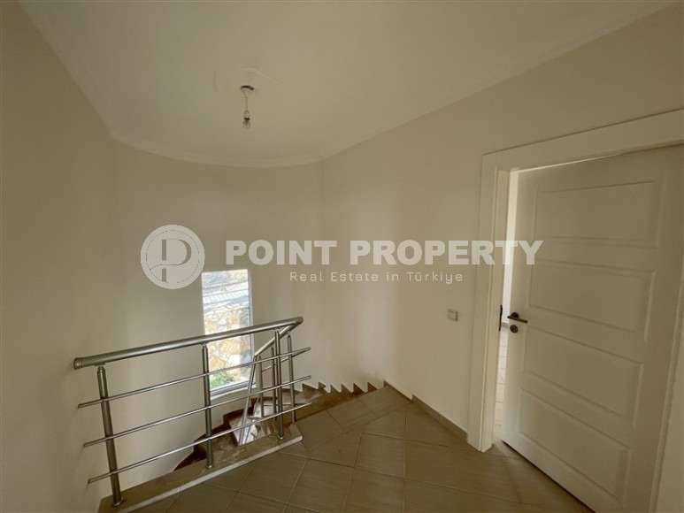 If you prefer a private villa with your own green garden and a cozy terrace to apartments in a high-rise residential complex, and quiet corners of the Mediterranean coast of Turkey to noisy tourist centers, we suggest paying attention to the elite area of Alanya - Hasbahce. Situated on the hills of the Taurus Mountains, offering breathtaking views of the sea, it is famous for its picturesque landscapes, abundance of greenery, excellent ecology, convenient location near the city center, and a light, calm atmosphere. In 2010, a twin villa was built here, with two separate entrances, one part of which is currently for sale. Spacious, with a total area of 200 m2, it occupies two floors and has a living room combined with a kitchen, three bedrooms, a small storage room, three bathrooms and two open balconies overlooking the green garden and the sea in the distance. The villa is offered with high-quality finishing, kitchen units, shower cabins and plumbing fixtures, which gives the new owners the opportunity to decorate the design in any style they like. With the help of our professional after-sales service team, which can easily resolve such everyday issues as ordering furniture and appliances or connecting communications, the repair process will not cause much trouble and will go as quickly as possible.