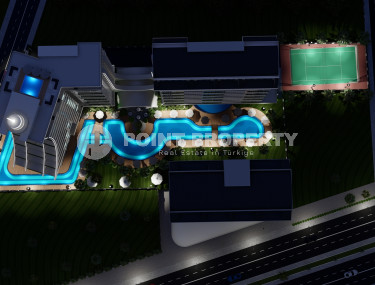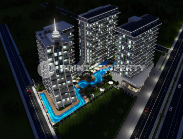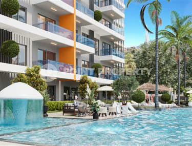 One-room apartment, 54 m², in a residence with hotel infrastructure under construction in the Alanya area - Mahmutlar, 1500m from the sea. Possible for investment.