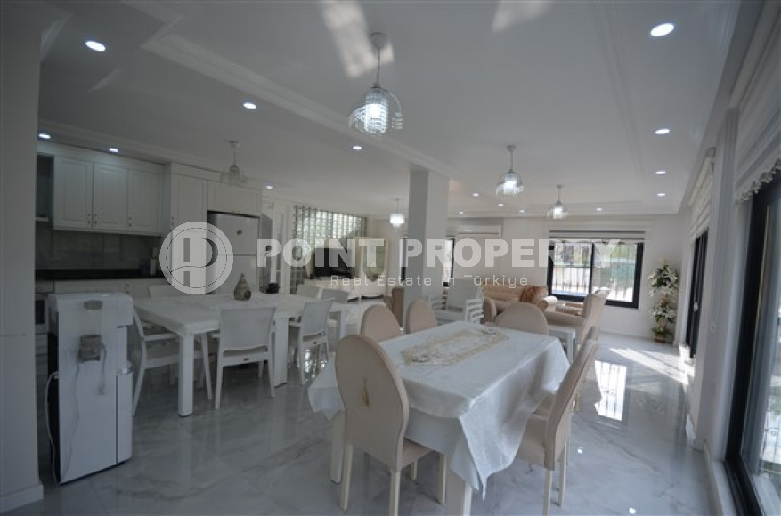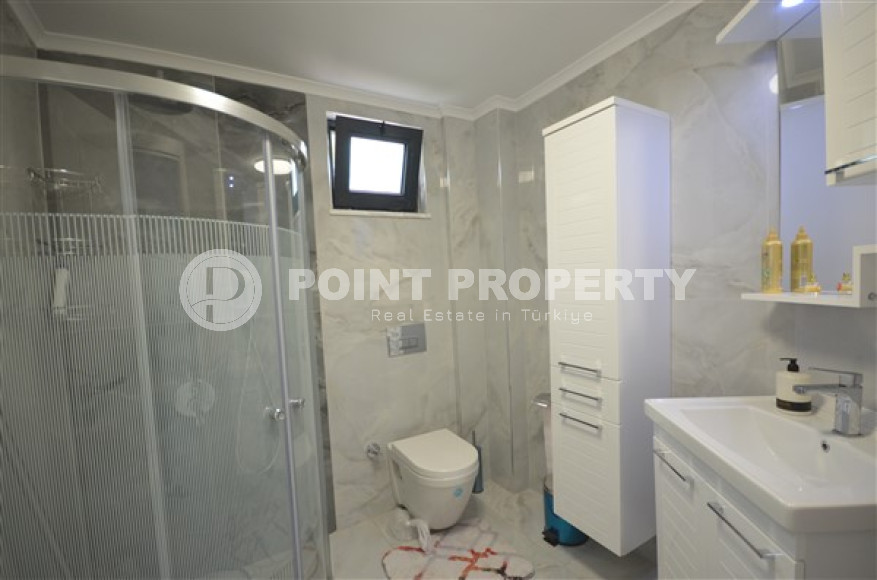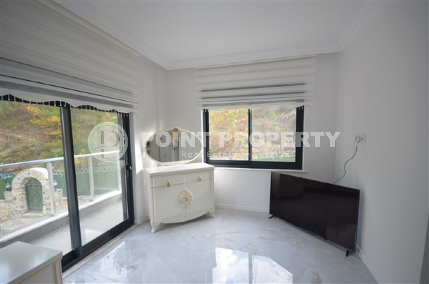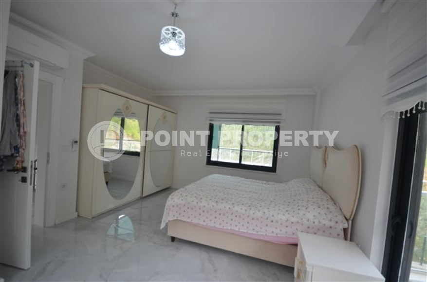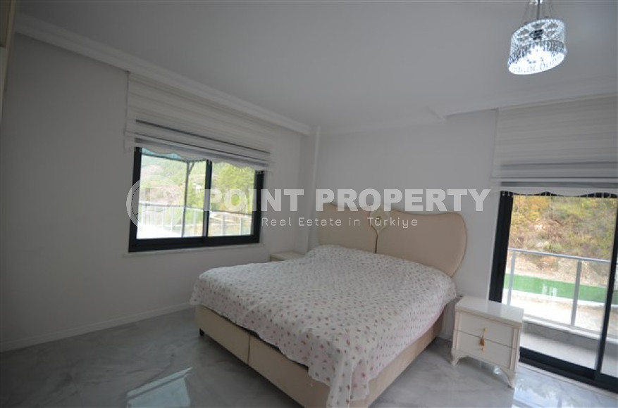 The duplex, with a total area of 250 m2, is located eighteen kilometers from the sea and the center of the Demirtas district, near the picturesque Sapadere mountain canyon. The layout of the villa includes a large living room combined with a kitchen, four bedrooms, three bathrooms, two balconies and a terrace. The house was built in 2016 and is sold with furniture and household appliances, which saves the new owners from many hassles. The rooms already have everything you need for a comfortable life - in the salon there is a soft corner and a large dining table, in the bedrooms there are comfortable beds and spacious wardrobes, the bathrooms are equipped with showers and high-quality ceramics, and the kitchen is equipped with modern appliances. Throughout the villa, a floor heating system is installed and the “smart home” function is connected, which allows you to remotely control all processes and manage comfort. The interior of the villa is simple and laconic, with a predominance of light shades, which visually makes it even more spacious and versatile. If desired, the new owners can easily add style and individuality to it, just by adding bright elements or minor decorative items.