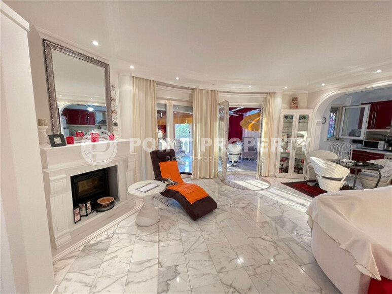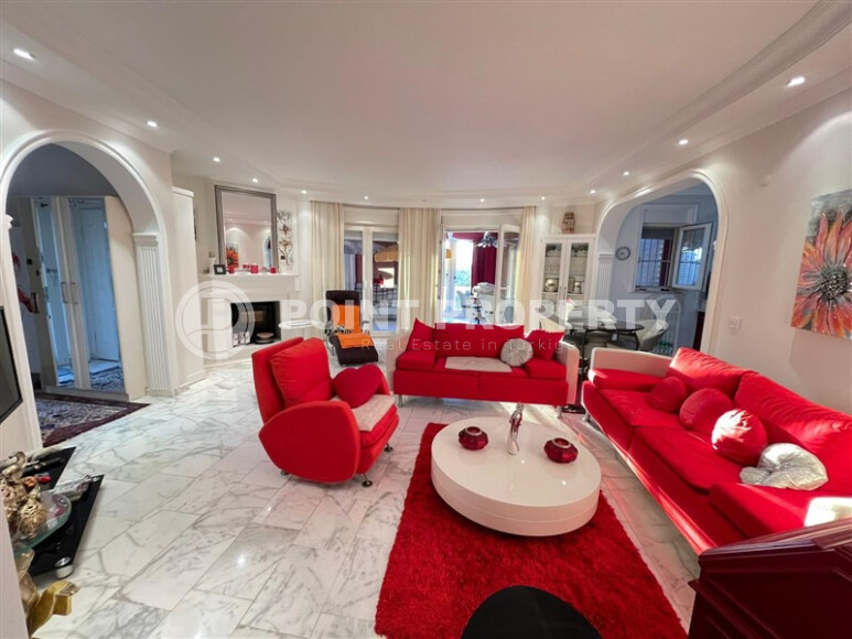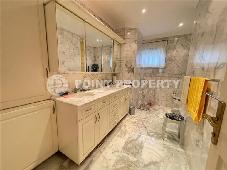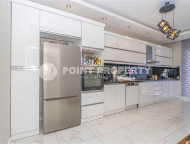 Large 4+1 apartment with an area of 250 m² is located in the Oba area - only 600 meters from the center and 2000 meters from the sea. The housing is unfurnished, with an installed kitchen set, storage room and dressing room. The building was built in 2012. It is possible to obtain a residence permit and citizenship.